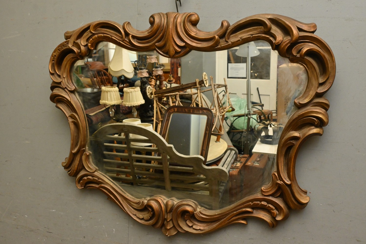A GILT-FRAMED WALL MIRROR IN ROCOCO MANNER (A/F) (79H X 103W CM) (LEONARD JOEL DELIVERY SIZE: LARGE)