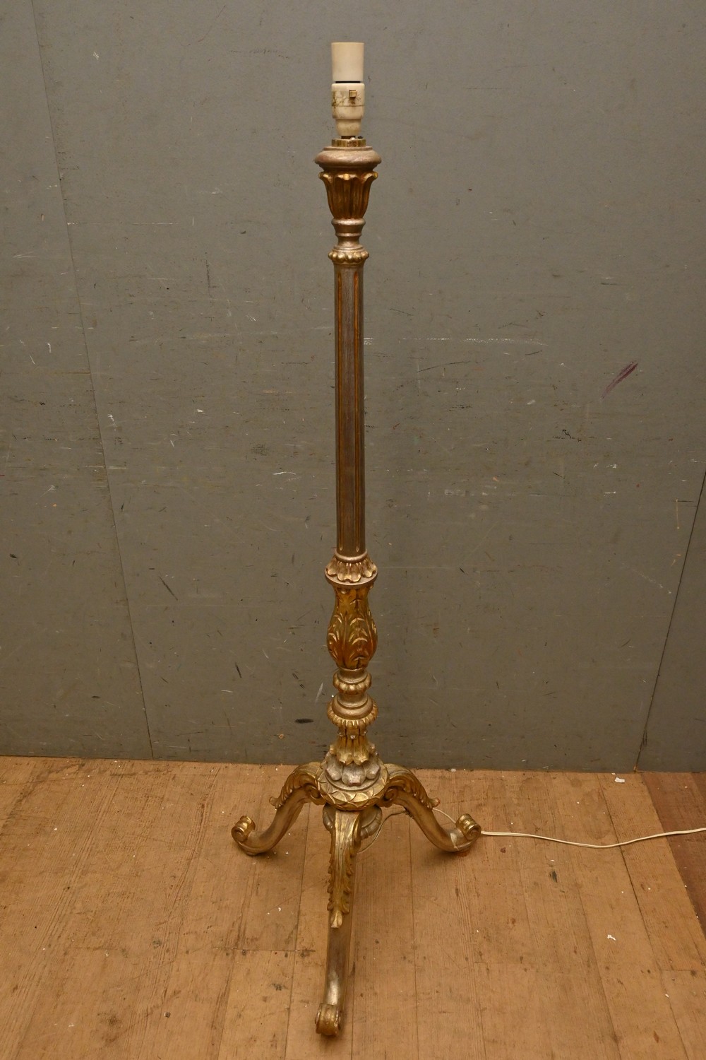 A CARVED, SILVERED, AND PARCEL-GILT STANDARD LAMP (A/F) ( 141H CM)