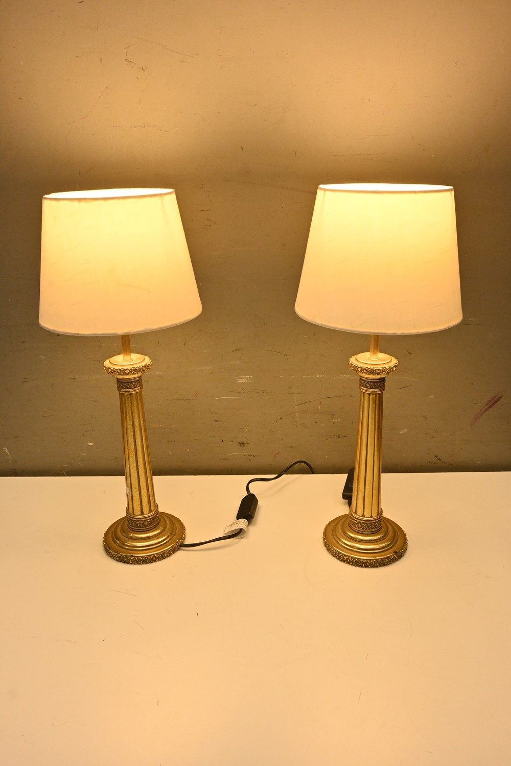 A PAIR OF GILT TABLE LAMPS ( 53H CM) (LEONARD JOEL DELIVERY SIZE: LARGE)