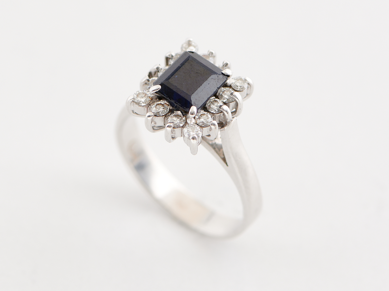 A SAPPHIRE AND DIAMOND RING IN 18CT WHITE GOLD, RING SIZE L, 5.7GMS