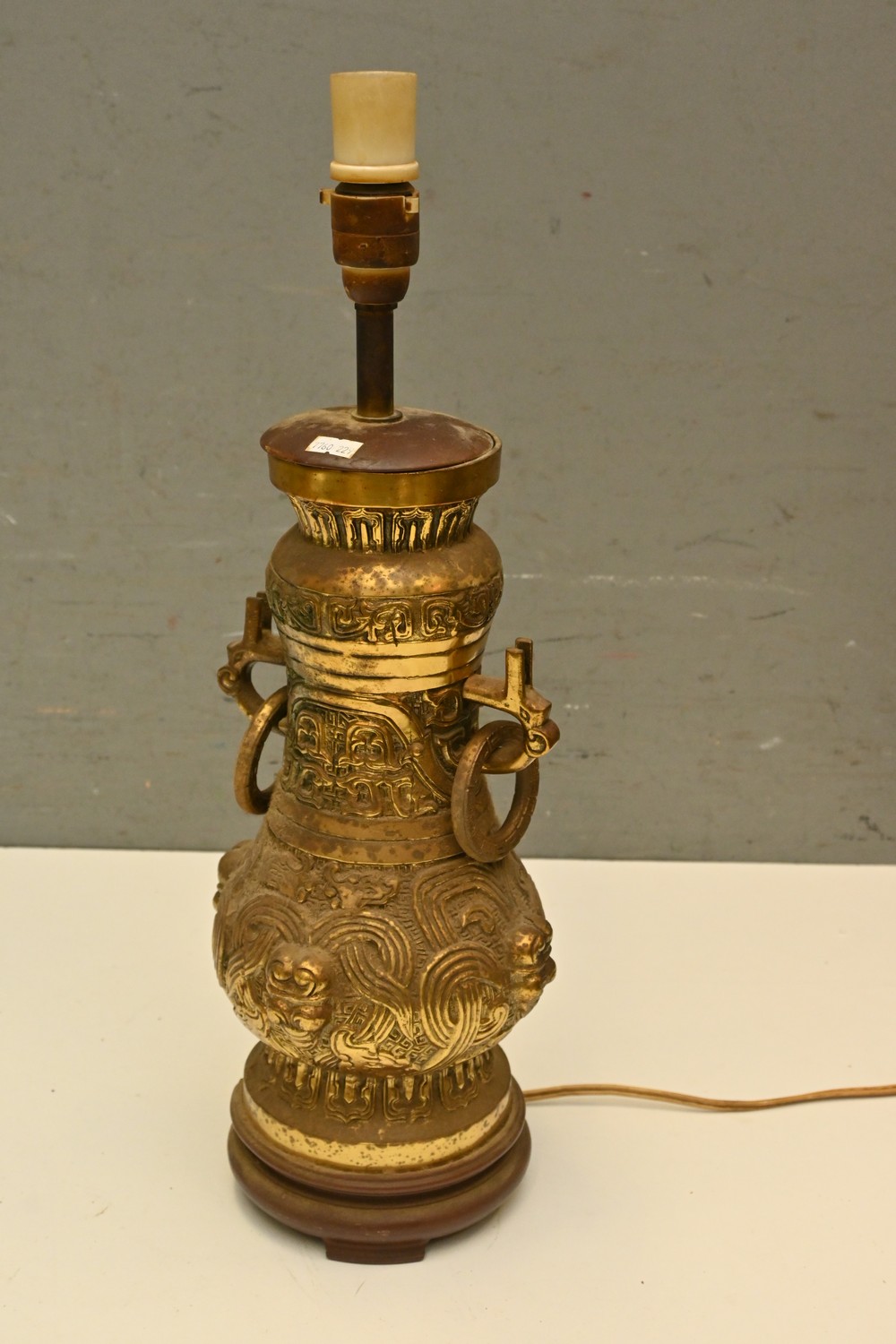 AN ORIENTAL CAST BRASS LAMP BASE (A/F) (UNTESTED) (54H CM)