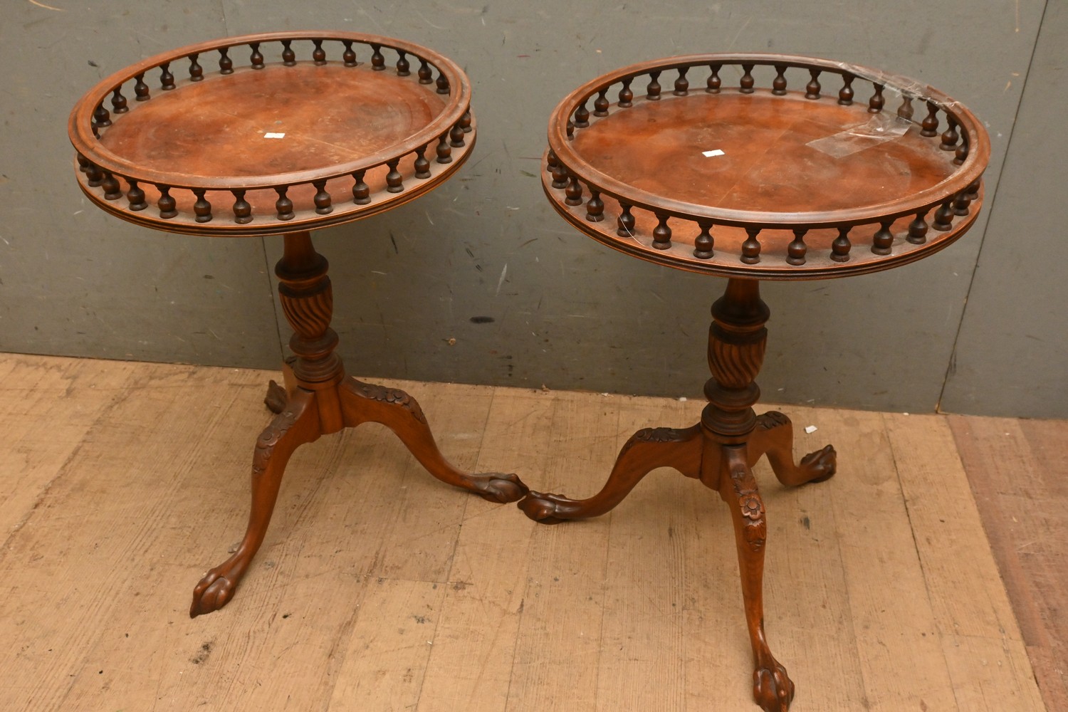 A PAIR OF WALNUT WINE TABLES IN GEORGIAN MANNER, (A/F) (63H X 47D CM) (LEONARD JOEL DELIVERY SIZE: LARGE)