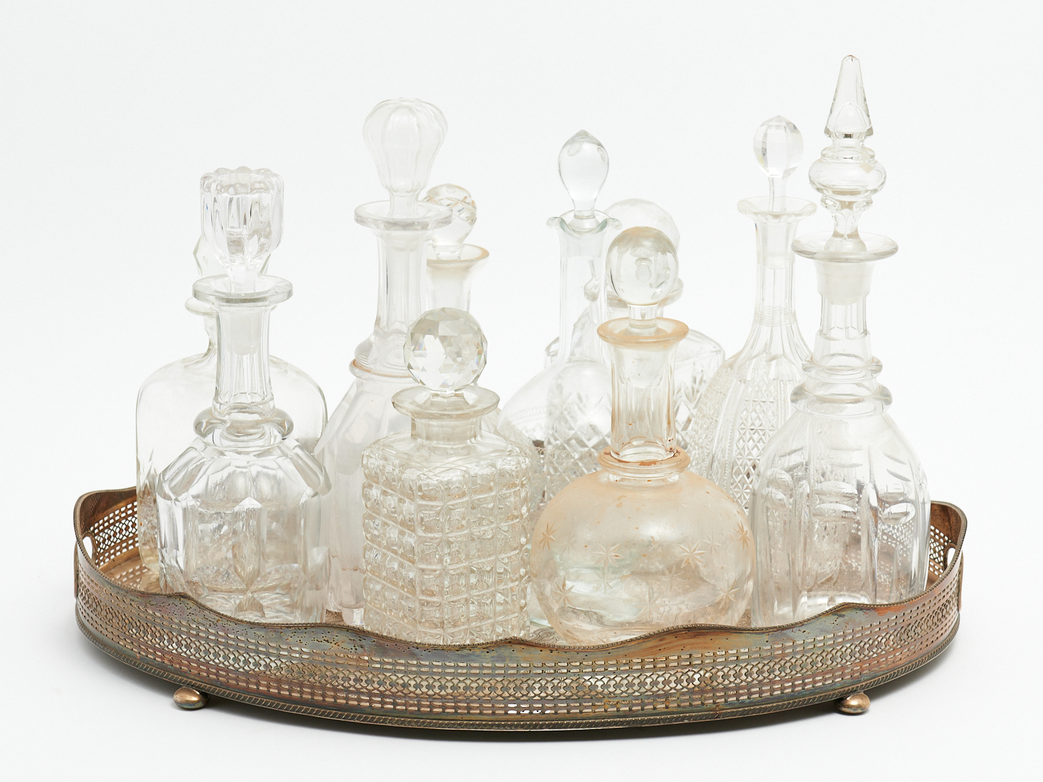 A GROUP OF CRYSTAL AND GLASS DECANTERS, LEONARD JOEL LOCAL DELIVERY: MEDIUM