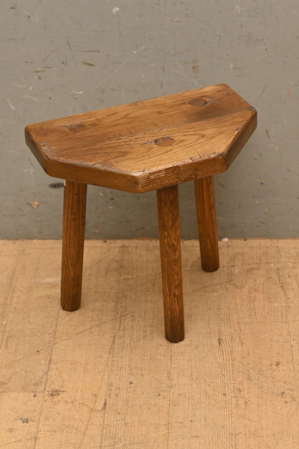 AN ANTIQUE-STYLE OAK MILKING STOOL (40H X 39W X 25D CM) (LEONARD JOEL DELIVERY SIZE: MEDIUM)