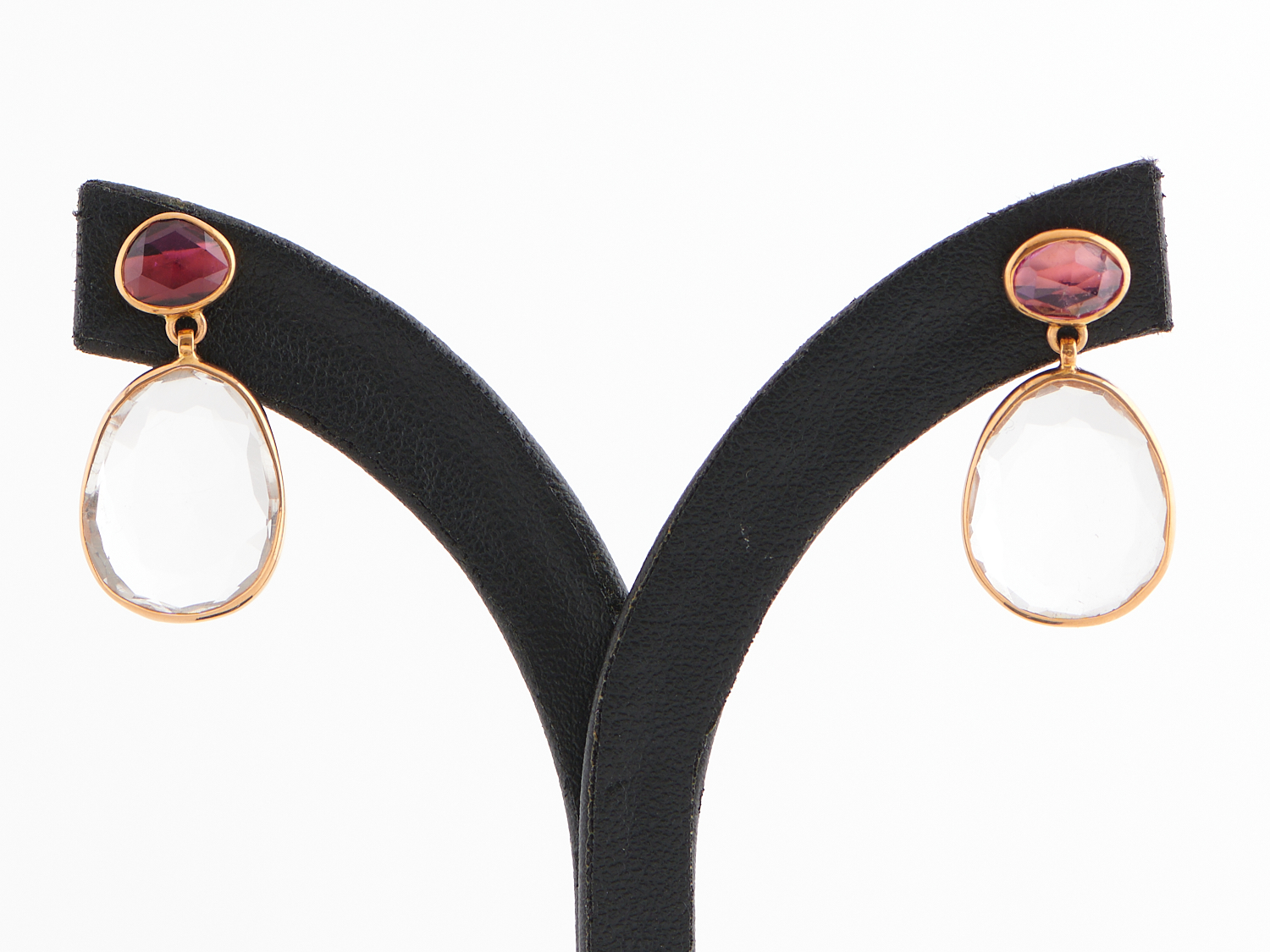 A PAIR OF GEM-SET PENDANT EARRINGS IN 18CT GOLD, TO POST AND BUTTERFLY FITTINGS, DROP LENGTH 26MM, TOTAL WEIGHT 6.1GMS