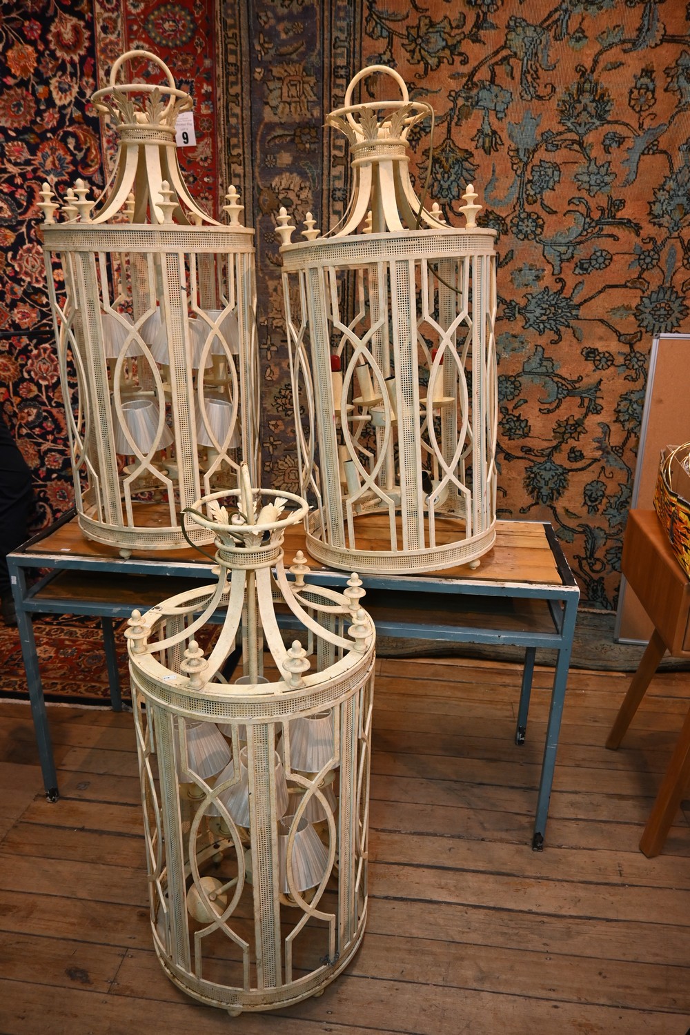 A COLLECTION OF THREE CLASSICAL STYLE LANTERN LIGHT FITTINGS (A/F) (110H X 53D CM) (THIS HEAVY ITEM MUST BE REMOVED BY CLIENTS OR CARRIERS AT THE CUSTOMERS EXPENSE. LEONARD JOEL STAFF CANNOT ASSIST CARRYING THIS ITEM)