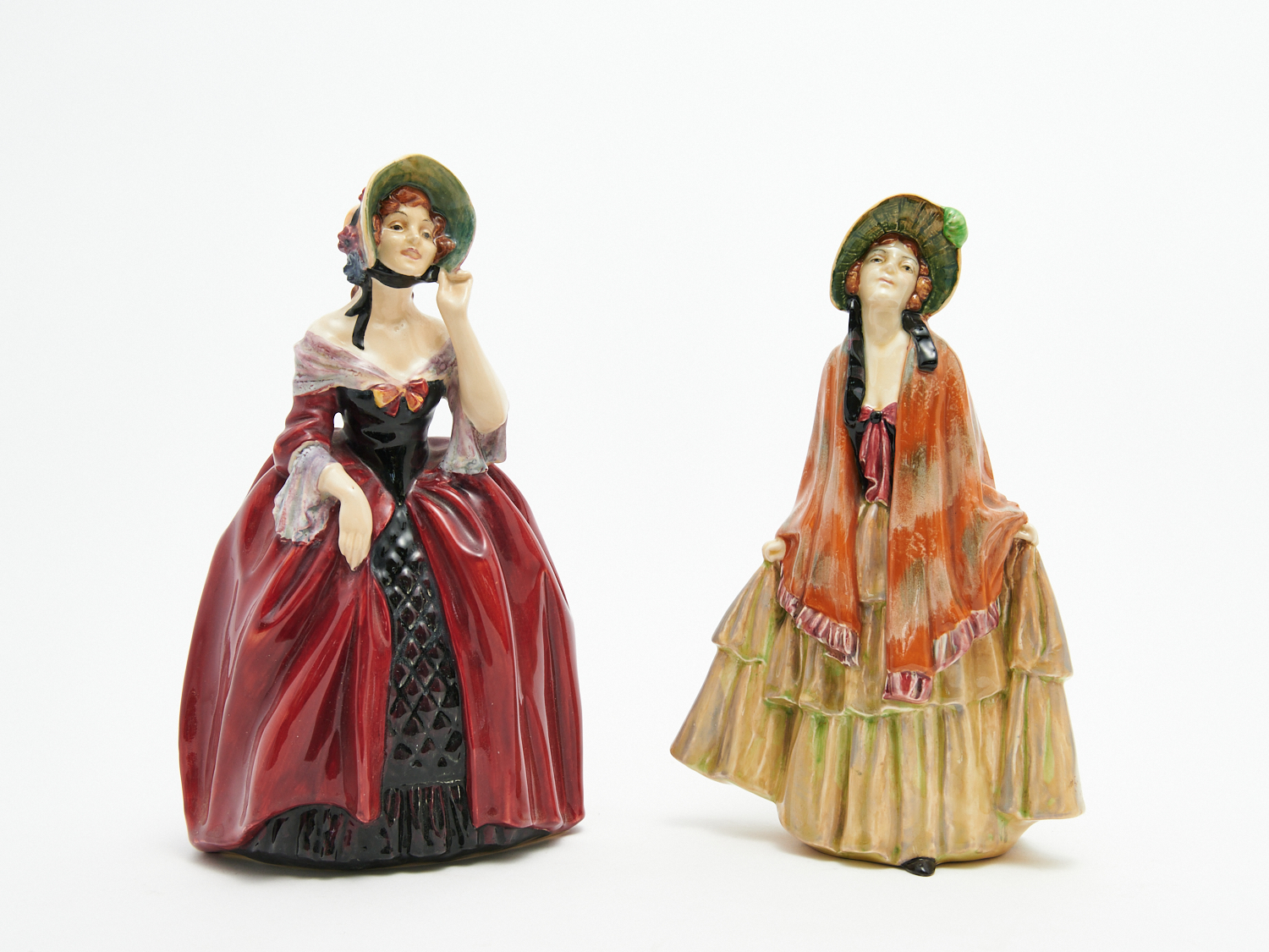 TWO ROYAL DOULTON FIGURINES MODELLED BY LESLIE HARRADINE, "MARGERY" H.28CM HN1413 1939-40 AND "RHODA" H.27CM HN1573 1933-40, LEONARD JOEL HOME DELIVERY SIZE: MEDIUM