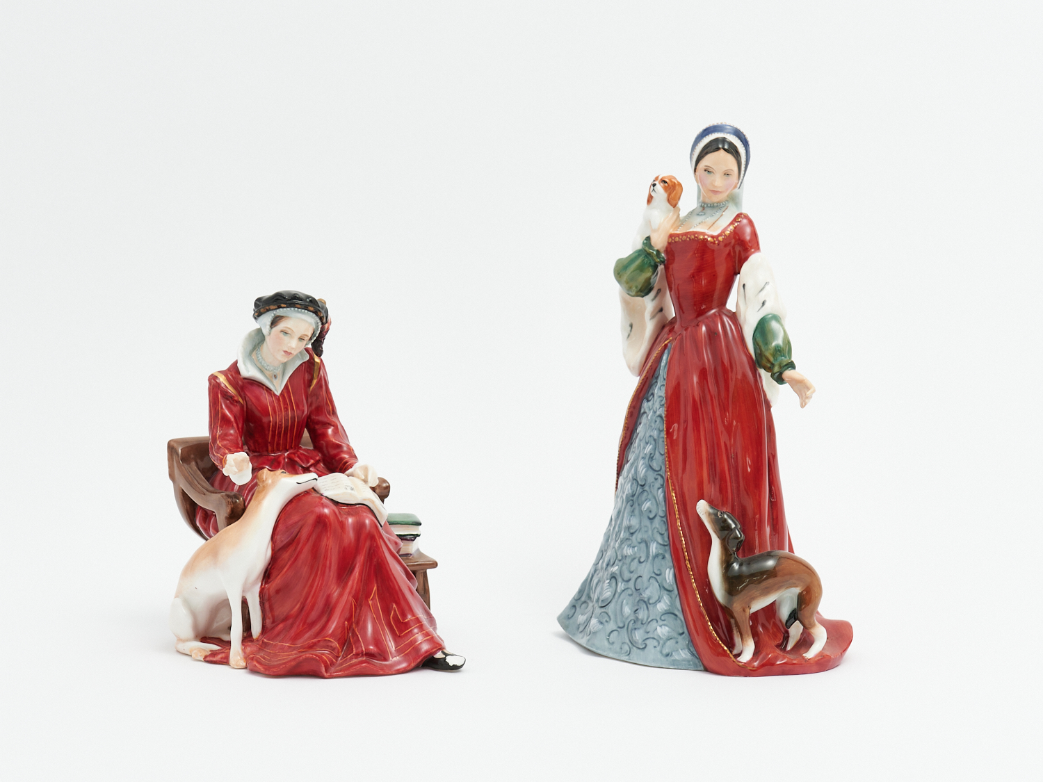 TWO ROYAL DOULTON FIGURINES MODELLED BY PAULINE PARSONS INCLUDING "ANNE BOLEYN" HN3232 LE2613/9500 1990, H.23CM AND CATHERINE PARR LE1548/9500 HN3450, H.17CM (A/F CHIP TO FOOT), LEONARD JOEL LOCAL DELIVERY: SMALL