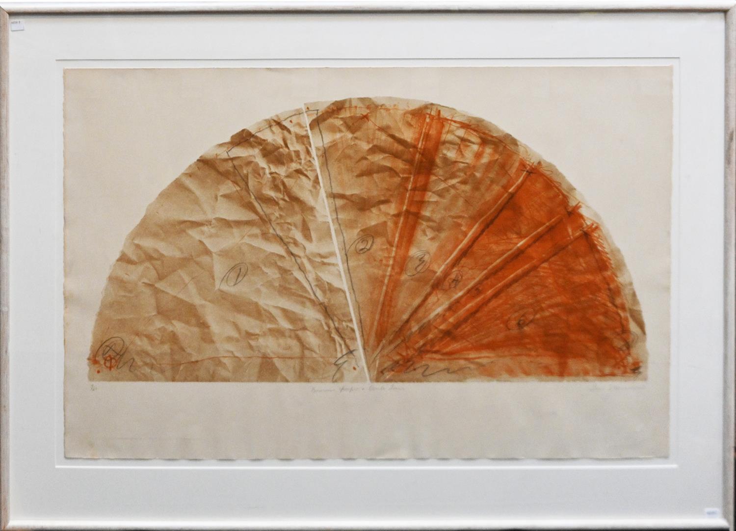 Work in good condition overall. Light discolouration to the paper. Cockling to the lower edge of the sheet. Surface marks and scratches are present on the frame.