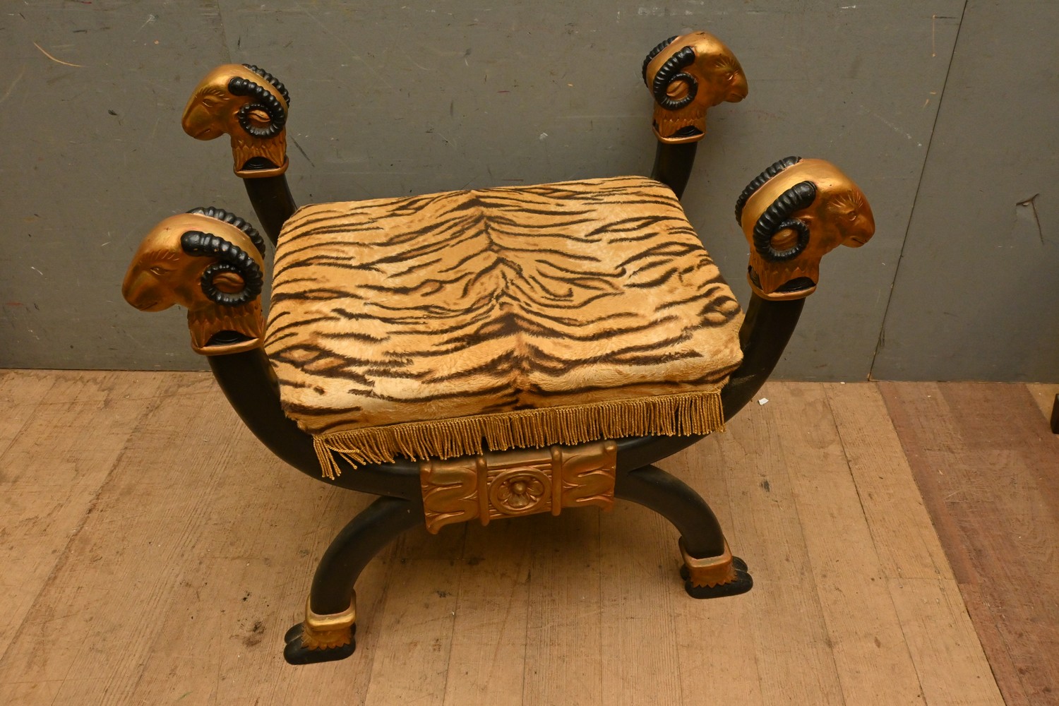 A NEO-CLASSICAL-STYLE EBONISED AND GILT CURULE SEAT (72H X 80W X 52D CM) (LEONARD JOEL DELIVERY SIZE: LARGE)