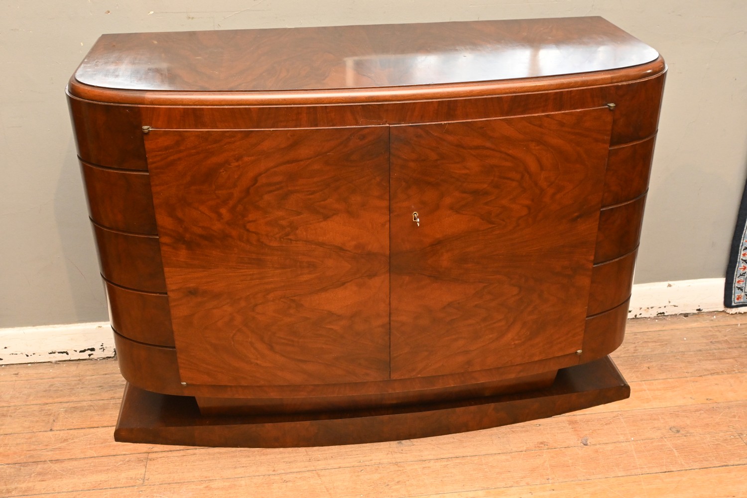 AN ART DECO BURR WALNUT TWO DOOR SIDEBOARD (A/F) (91H X 119W X 52D CM) (THIS HEAVY ITEM MUST BE REMOVED BY CLIENTS OR CARRIERS AT THE CUSTOMERS EXPENSE. LEONARD JOEL STAFF CANNOT ASSIST CARRYING THIS ITEM)