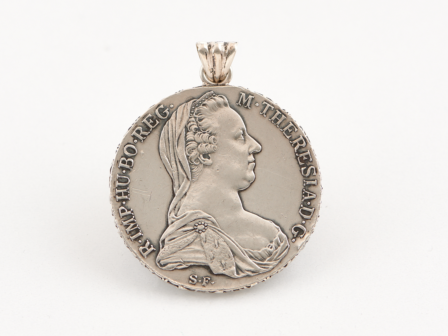 AN AUSTRO-HUNGARIAN COIN PENDANT IN SILVER, DATED 1780