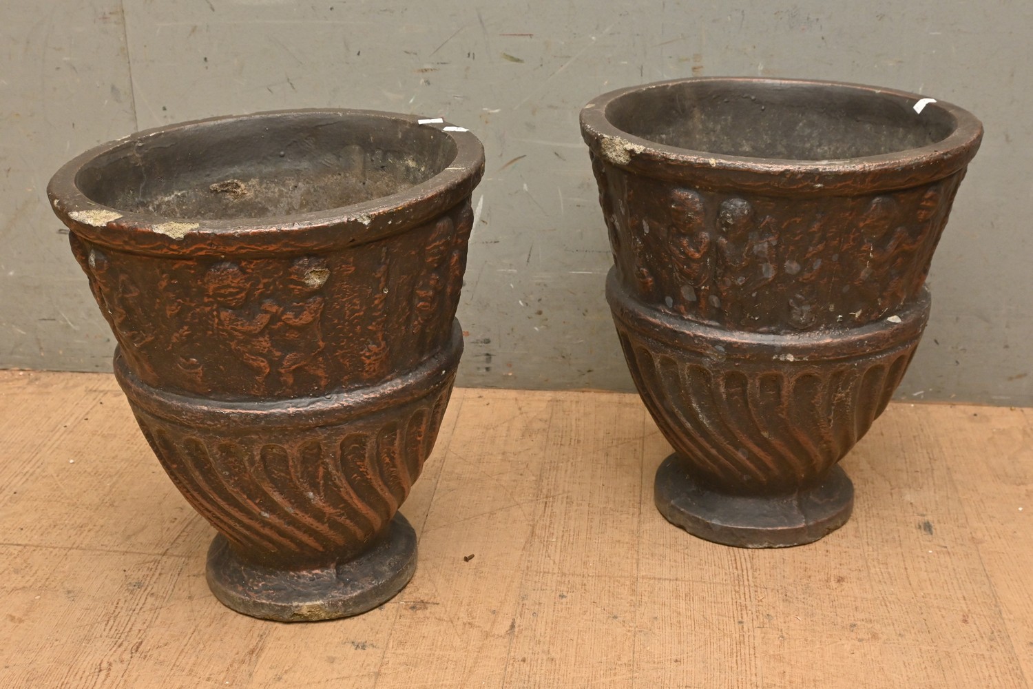 A PAIR OF CLASSICAL STYLE GARDEN URNS (A/F) (40H X 37D CM) (THIS HEAVY ITEM MUST BE REMOVED BY CLIENTS OR CARRIERS AT THE CUSTOMERS EXPENSE. LEONARD JOEL STAFF CANNOT ASSIST CARRYING THIS ITEM)