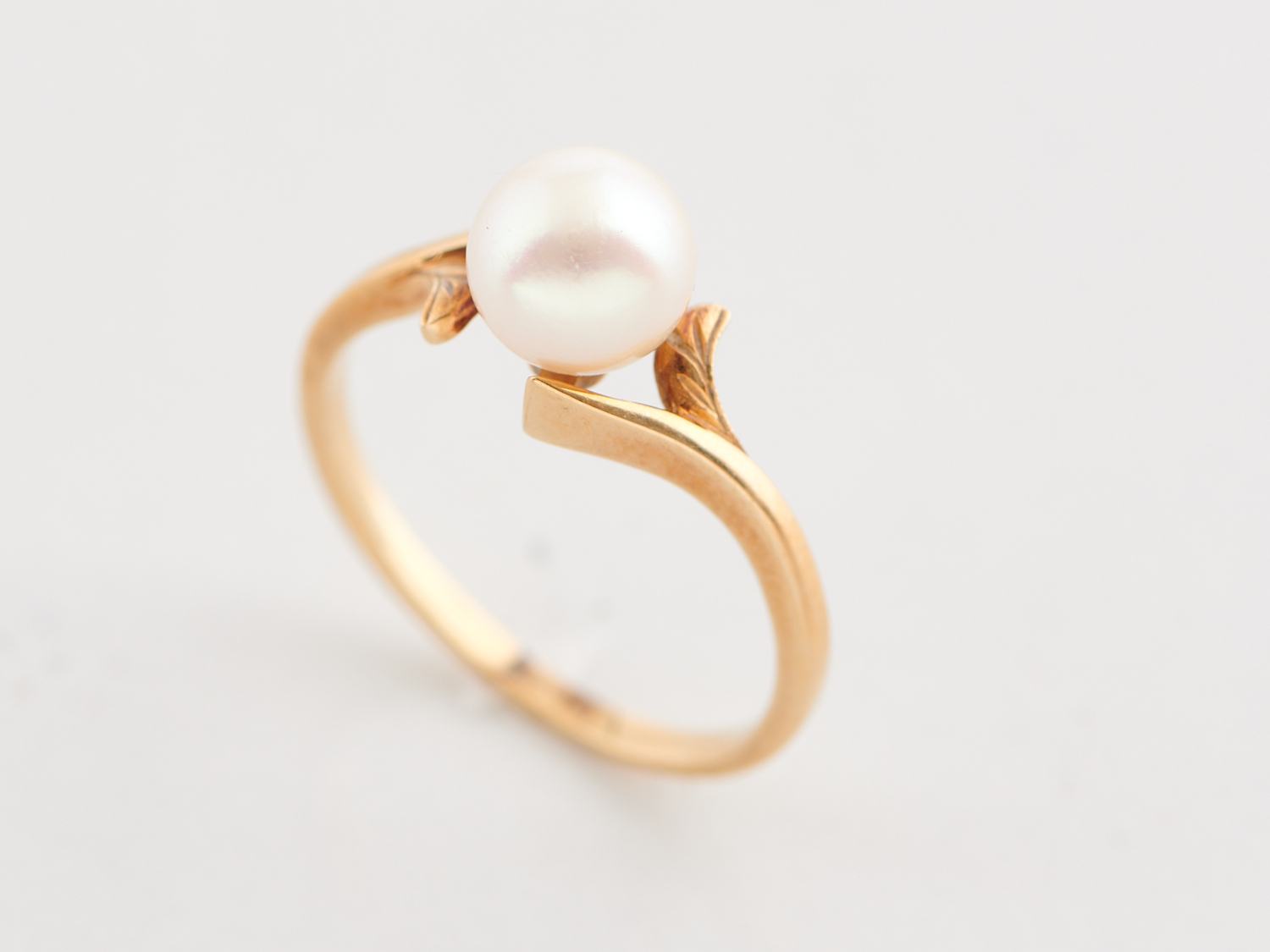 A MIKIMOTO PEARL RING IN 14CT GOLD, RING SIZE O, 2.5GMS, BOXED