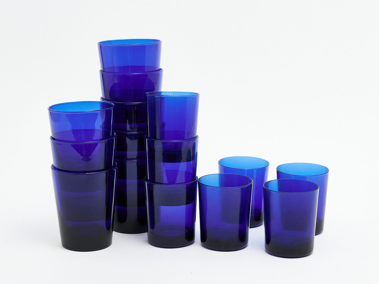 A GROUP OF BRISTOL BLUE GLASSES, SMALLER MARKED FRANCE REIMS, LARGER UNMARKED H.11CM (TALLEST), LEONARD JOEL LOCAL DELIVERY: MEDIUM