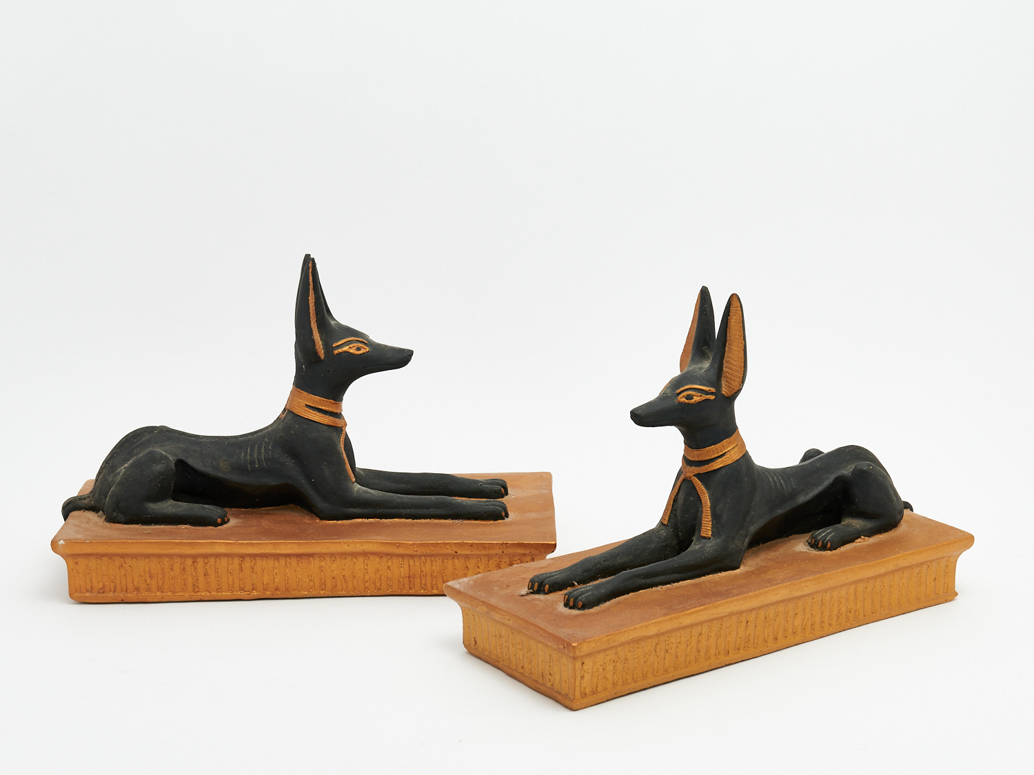 A PAIR OF PLASTER EGYPTIAN ANUBIS SCULPTURES H.28CM X W.40CM, LEONARD JOEL LOCAL DELIVERY: MEDIUM