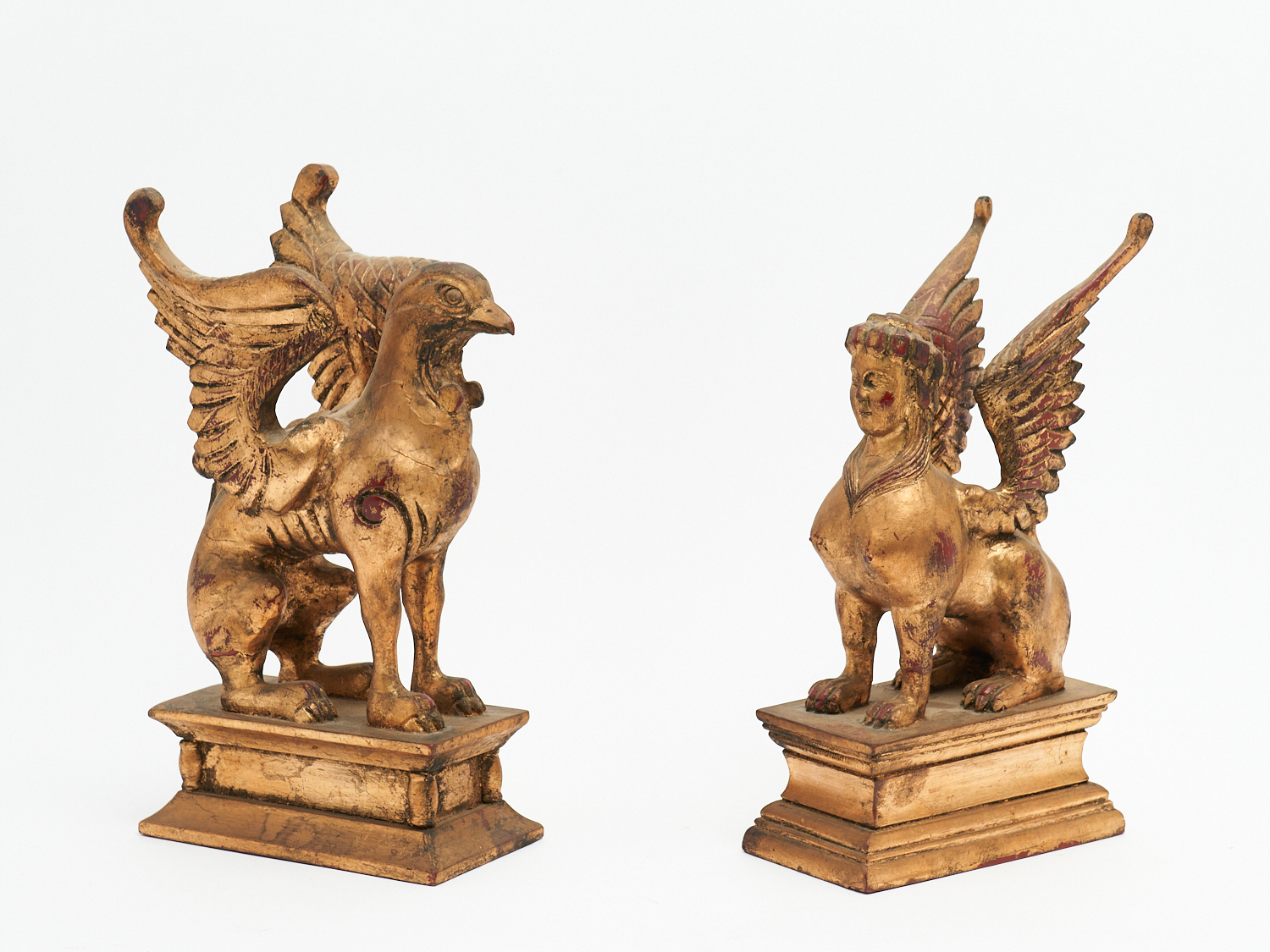 TWO GILDED WOOD CARVINGS INCLUDING GRIFFIN AND SPHINX (A/F) H.35CM (TALLEST), LEONARD JOEL LOCAL DELIVERY: SMALL