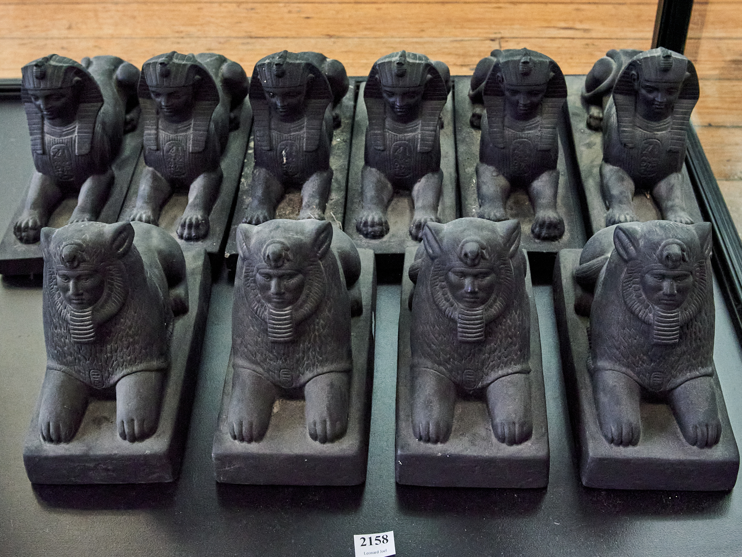 A LARGE GROUP OF BLACK PAINTED PLASTER SPHINX ORNAMENTS H.6CM X W.16CM, LEONARD JOEL LOCAL DELIVERY: MEDIUM
