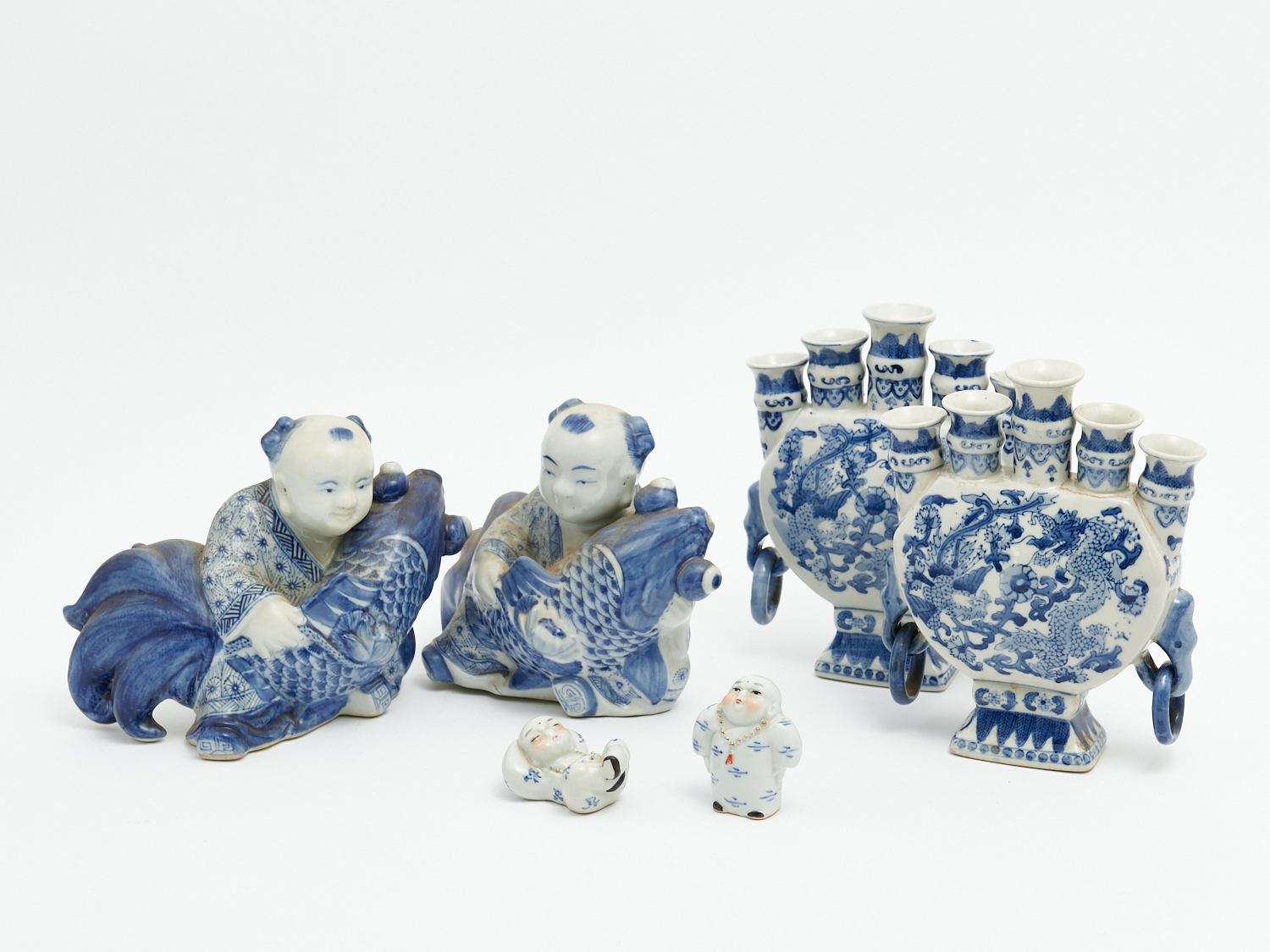 A PAIR OF CHINESE BLUE AND WHITE TULIP VASES AND OTHERS H.20CM, LEONARD JOEL LOCAL DELIVERY: SMALL