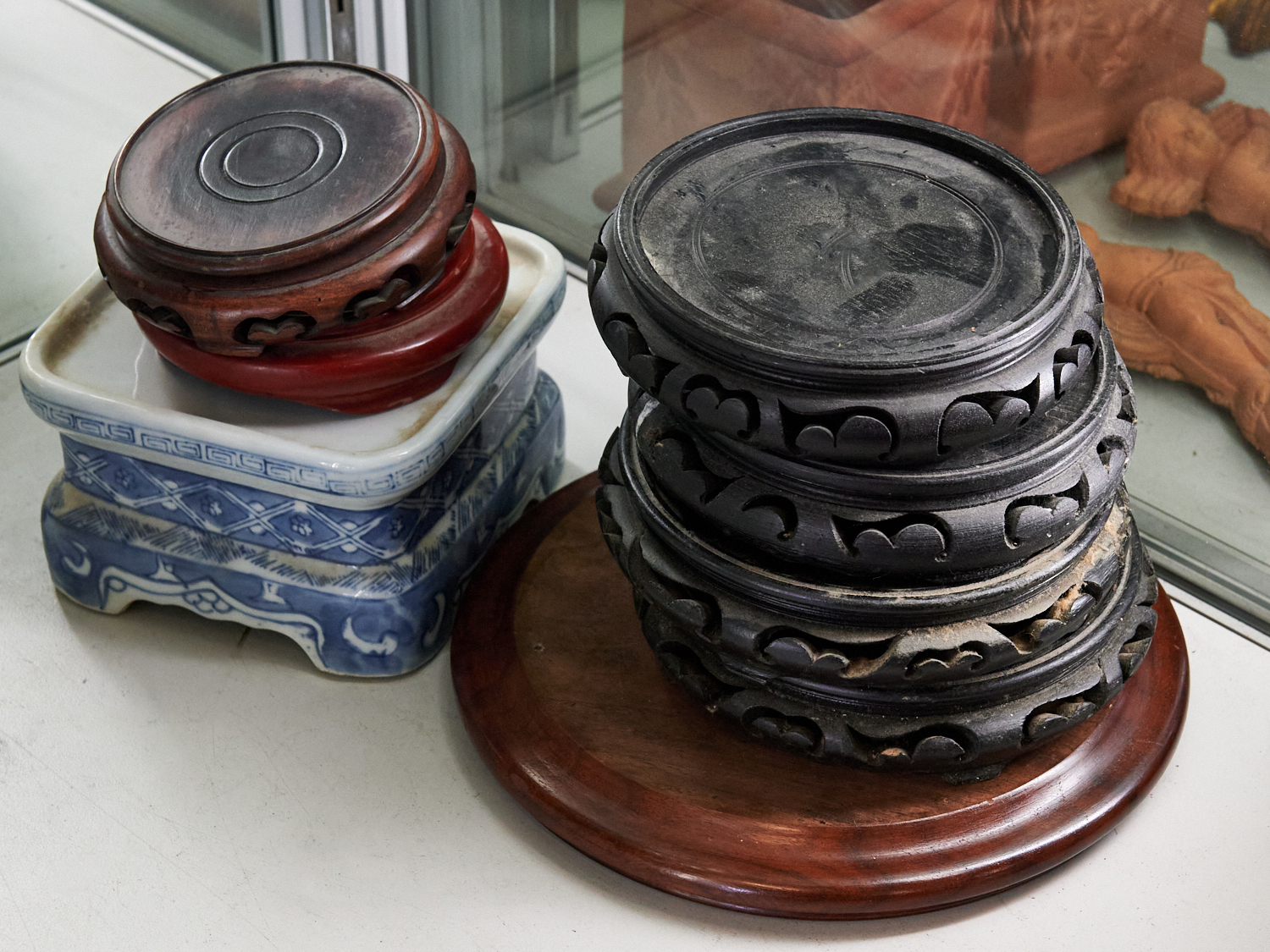 A GROUP OF WOODEN AND CERAMIC STANDS, LEONARD JOEL LOCAL DELIVERY: SMALL