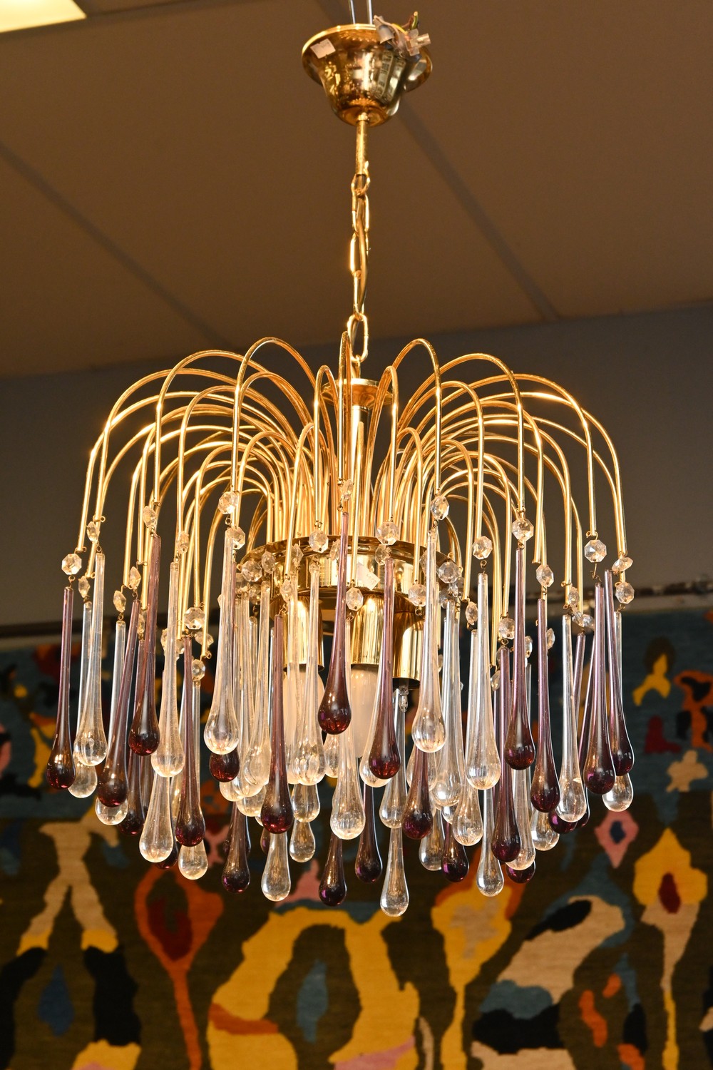 A MID CENTURY BRASS PALTED TEARDROP WATERFALL CHANDLEIER (A/F) (MISSING PARTS IN OFFICE) (80H X 50D CM) (LEONARD JOEL DELIVERY SIZE: LARGE)