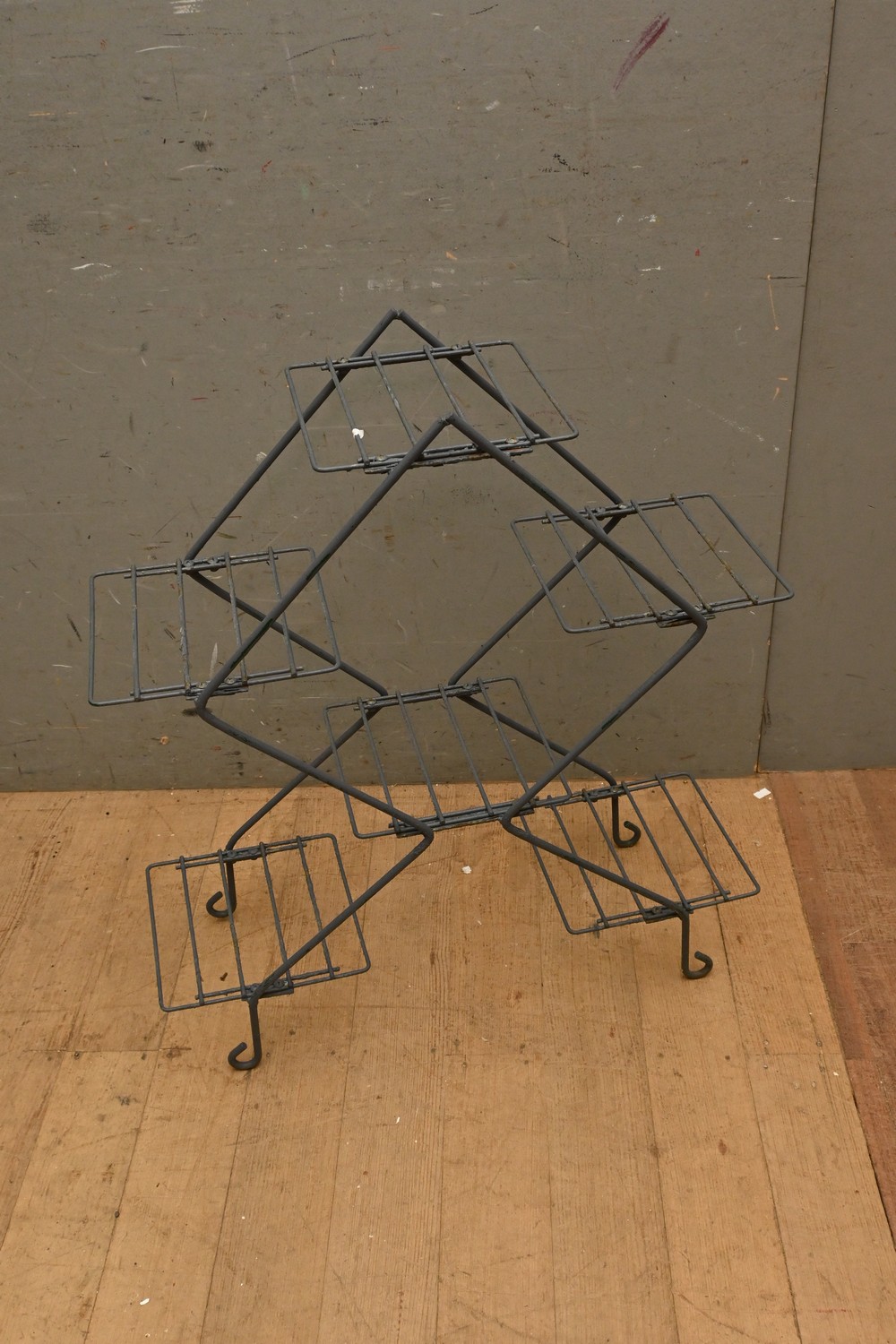 A THREE TIER GREY METAL PLANT STAND (75H X 70W CM) (LEONARD JOEL DELIVERY SIZE: LARGE)