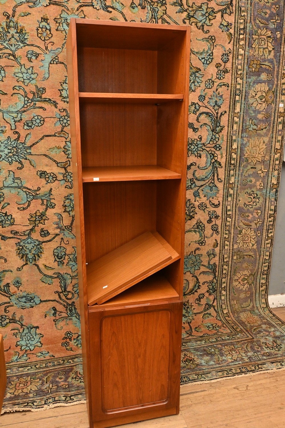 A RETRO TEAK THREE ADJUSTABLE SHELF DISPLAY BOOK STAND (A/F) (180H X 46W X 40D CM) (LEONARD JOEL DELIVERY SIZE: X-LARGE)