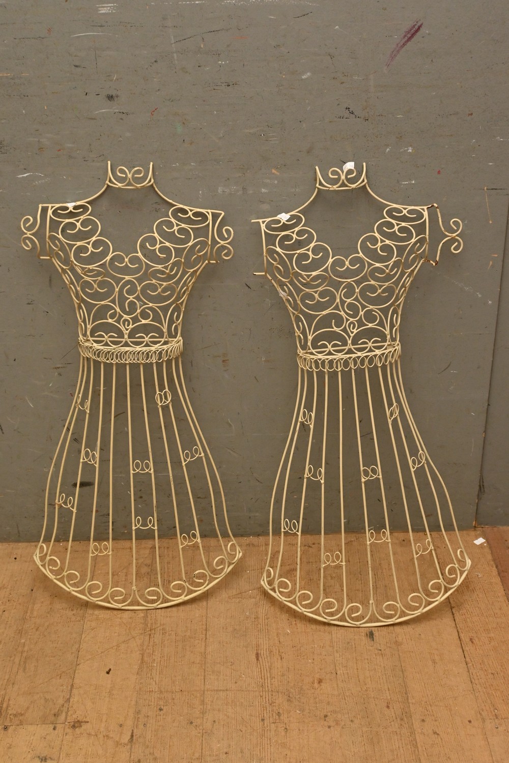 A PAIR OF VINTAGE WIRE WORK HANGING PLANT STANDS (80H CM) (LEONARD JOEL DELIVERY SIZE: LARGE)