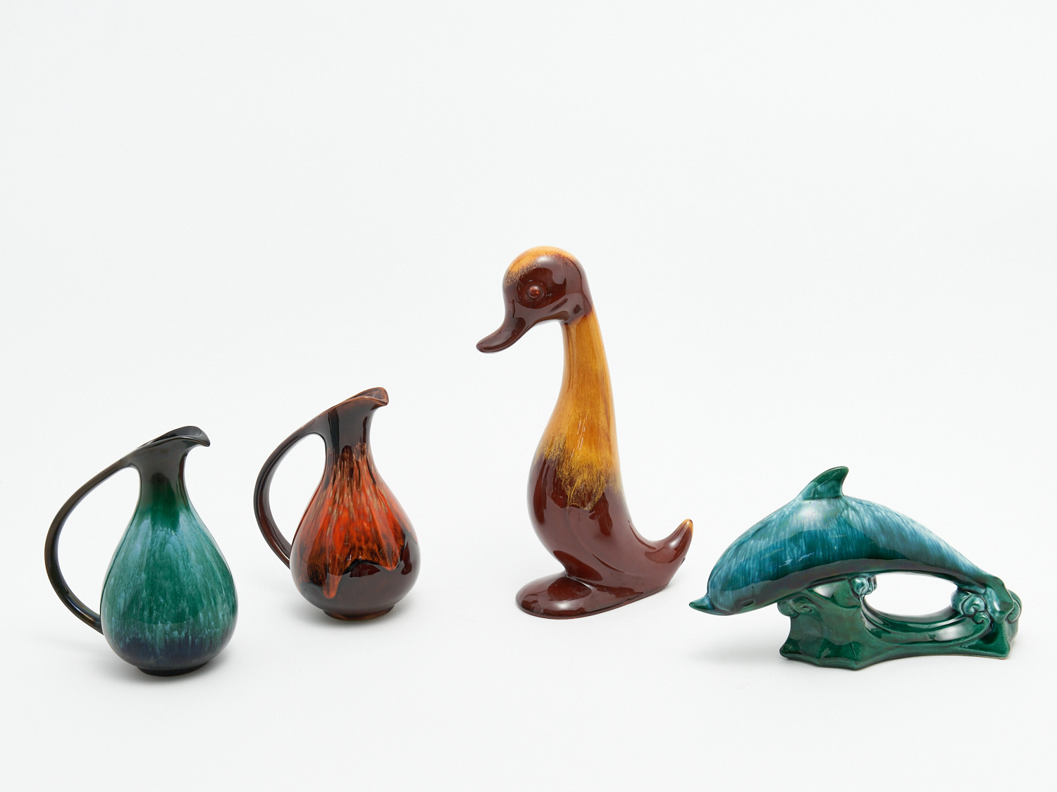A GROUP OF CANADIAN POTTERY INCLUDING JUGS AND ANIMALS, H.28.5CM (TALLEST), LEONARD JOEL HOME DELIVERY SIZE: MEDIUM