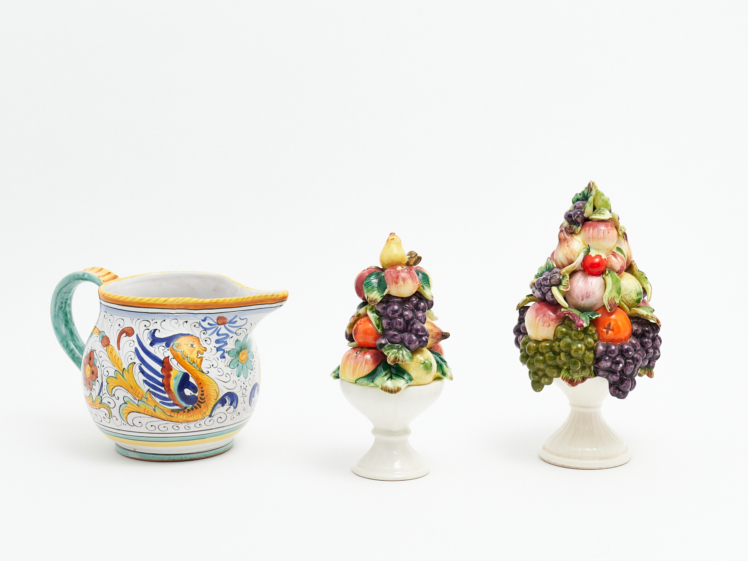 THREE PIECES OF ITALIAN GLAZED TERRACOTTA (A/F) H.25CM (TALLEST), LEONARD JOEL LOCAL DELIVERY: SMALL