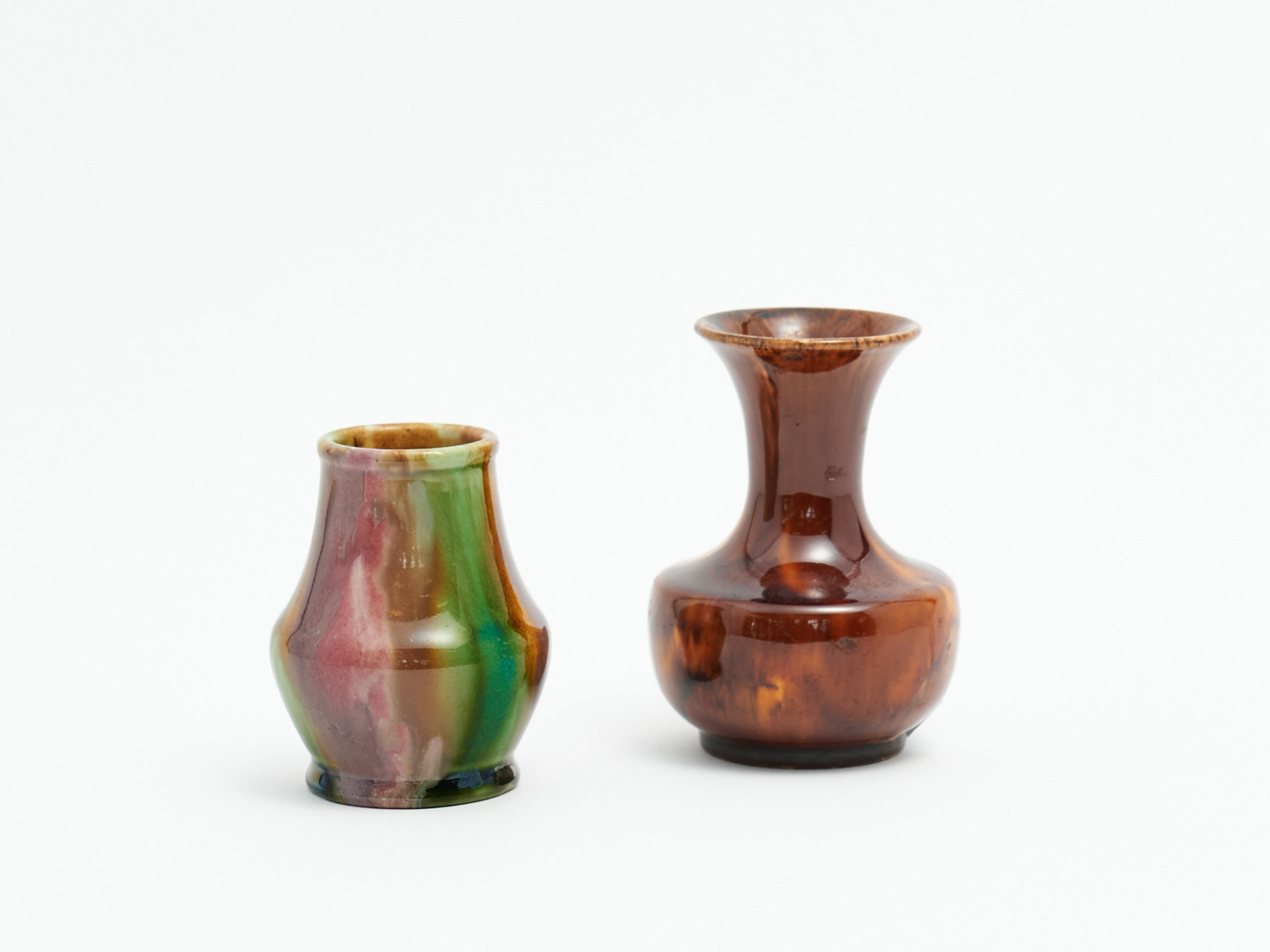 TWO MCHUGH TASMANIAN POTTERY VASES, H.10CM, LEONARD JOEL LOCAL DELIVERY: SMALL
