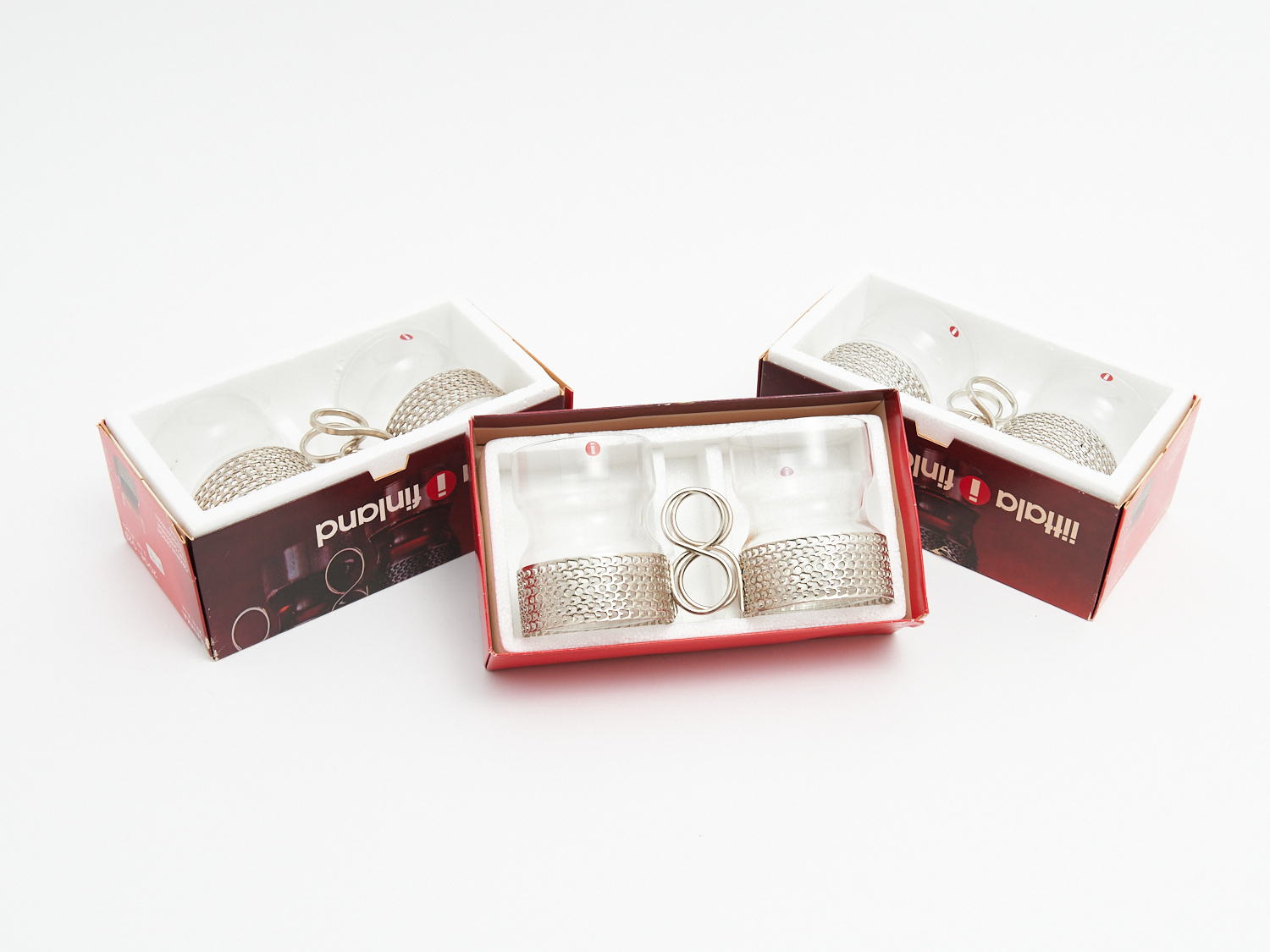 SIX IITALA FINLAND TSAIKKA METAL BOUND GLASS CUPS, H.8.5CM, LEONARD JOEL LOCAL DELIVERY: SMALL