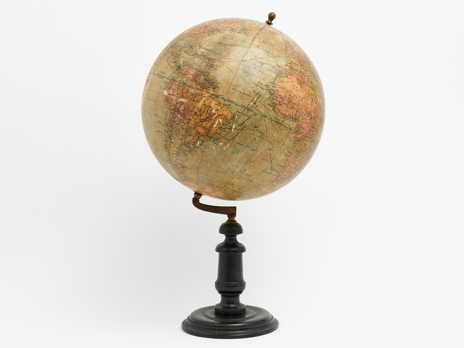 A 19TH CENTURY FRENCH G NIOX GLOBE TERRESTRE ON EBONISED AND BRASS BASE, H.54CM, LEONARD JOEL LOCAL DELIVERY: MEDIUM