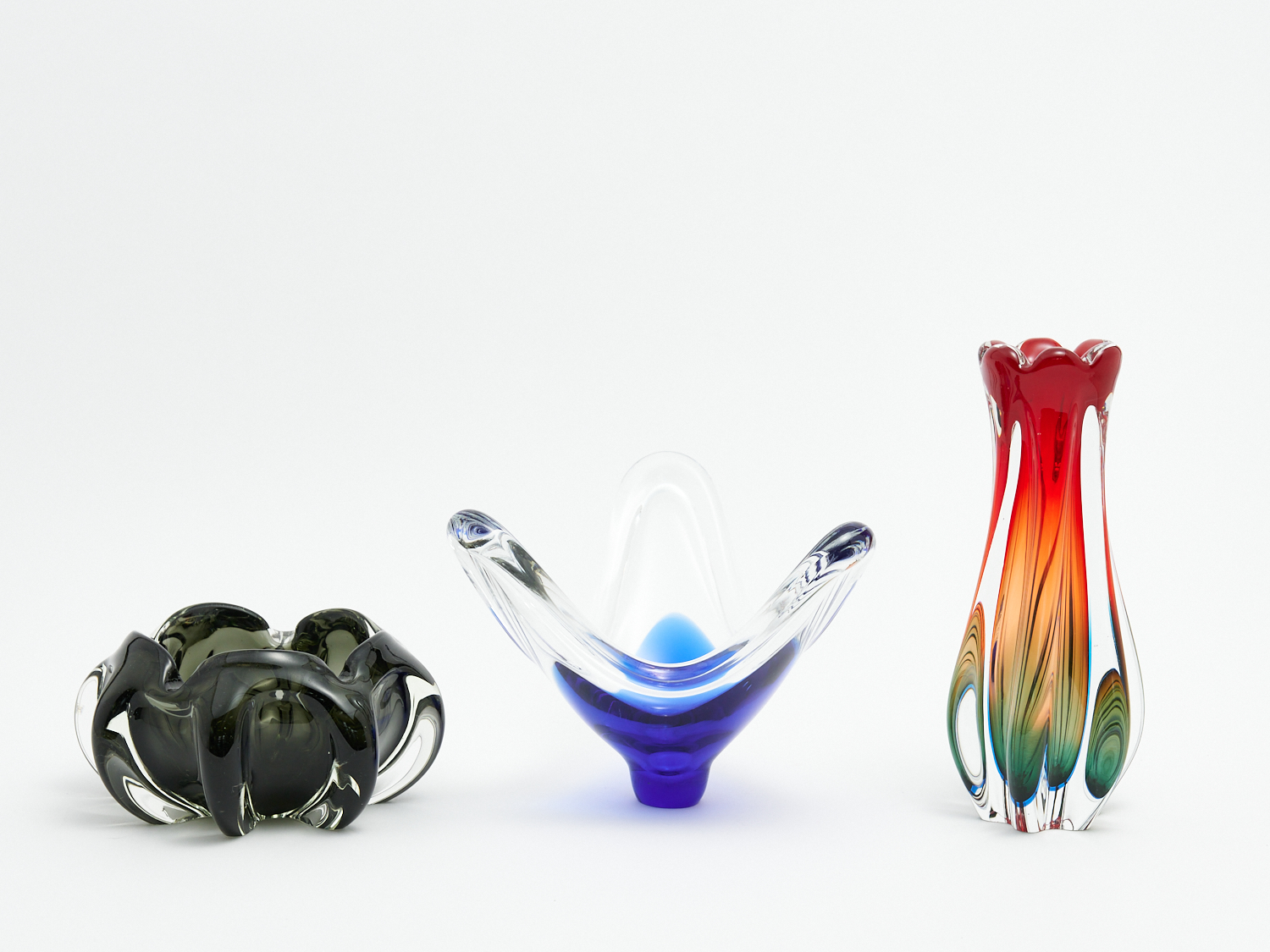THREE PIECES OF VINTAGE GLASS H.24CM (TALLEST), LEONARD JOEL LOCAL DELIVERY: SMALL