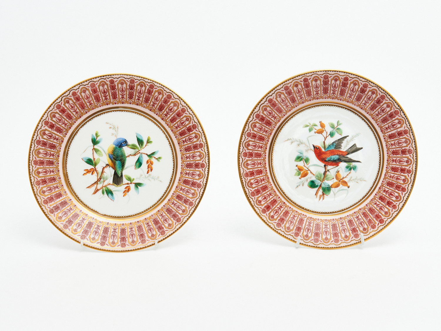 A PAIR OF VICTORIAN CROWN DERBY HAND PAINTED PLATES DIA.23.5CM, LEONARD JOEL HOME DELIVERY SIZE: SMALL