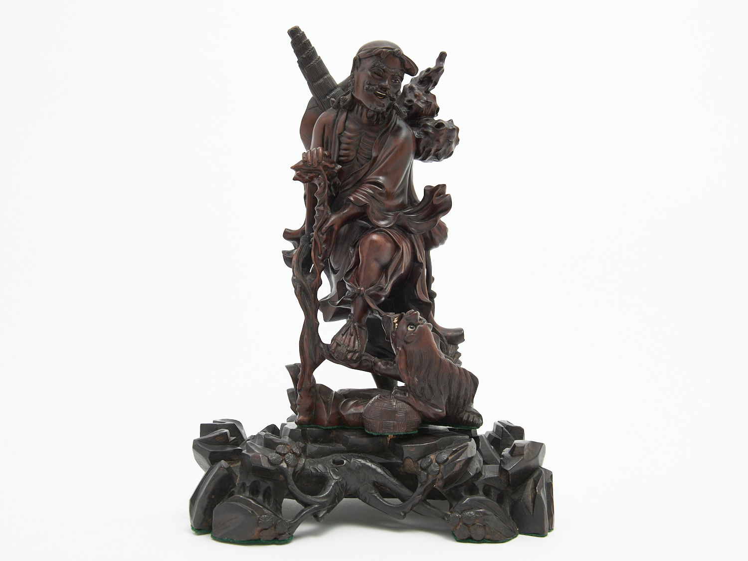 A CHINESE IMMORTAL LI TIEGUAI ROSEWOOD FIGURE C1900 ON BASE (A/F) H.37CM, LEONARD JOEL HOME DELIVERY SIZE: MEDIUM