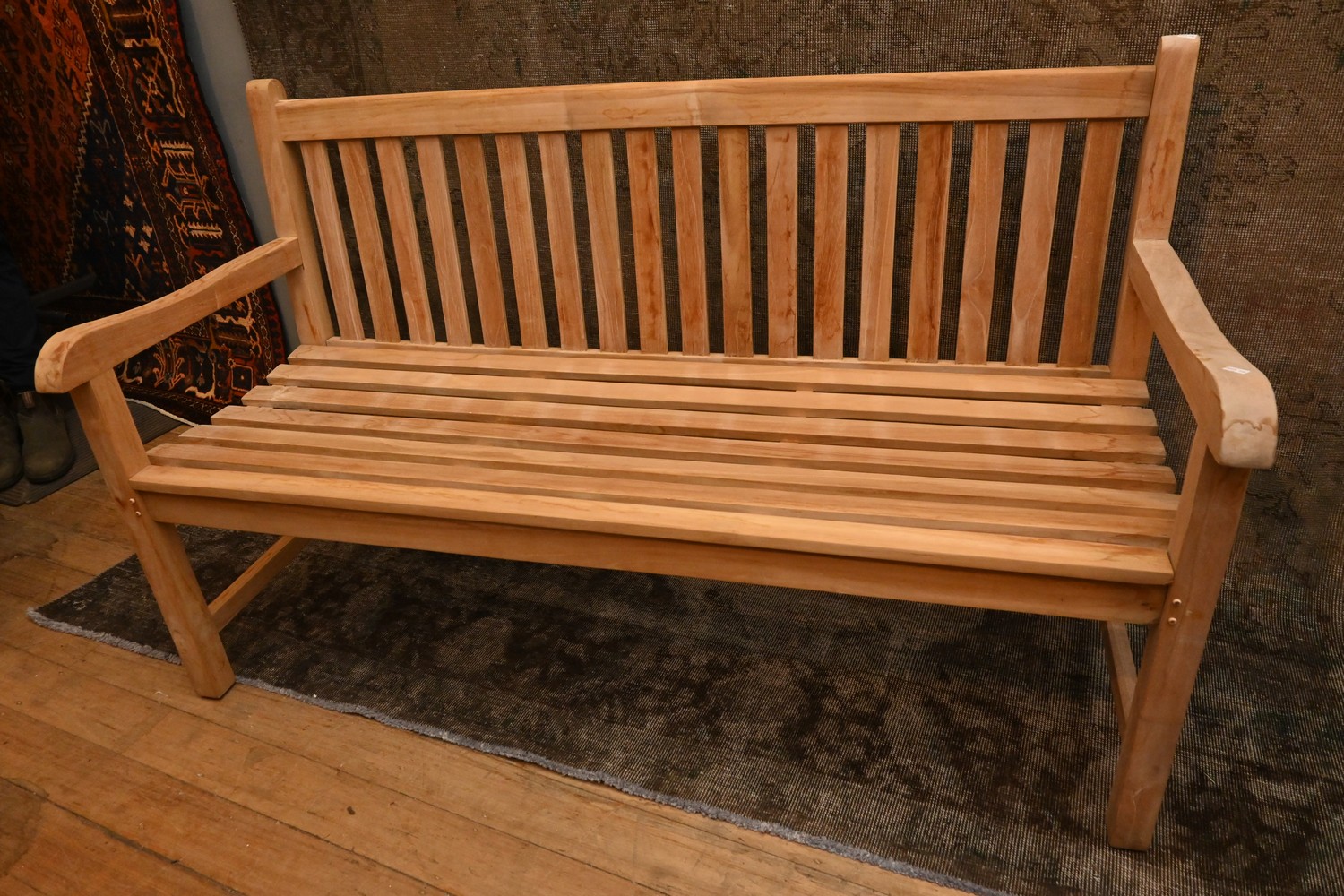 A TEAK GARDEN BENCH SEAT ( 93H X 151W X 68D CM) (LEONARD JOEL DELIVERY SIZE: X-LARGE)