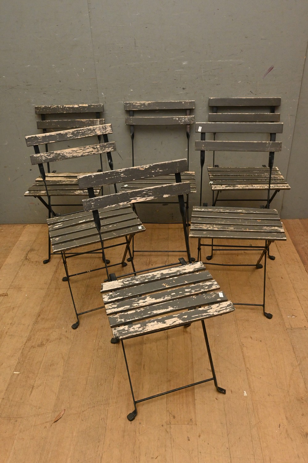 SIX FRENCH FOLDABLE METAL & TIMBER PICNIC CHAIRS (A/F) (80H X 40W X 44D CM) (LEONARD JOEL DELIVERY SIZE: LARGE)