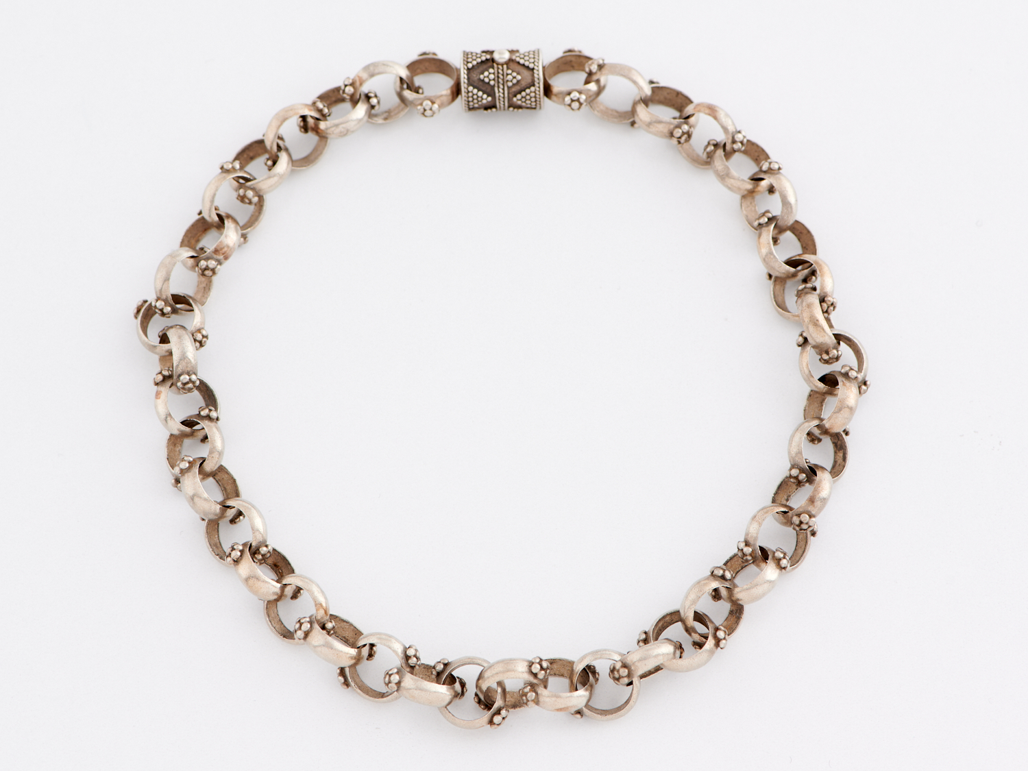 A DECORATIVE LINK NECKLACE IN SILVER, LENGTH 420MM, WEIGHT 101.8GMS