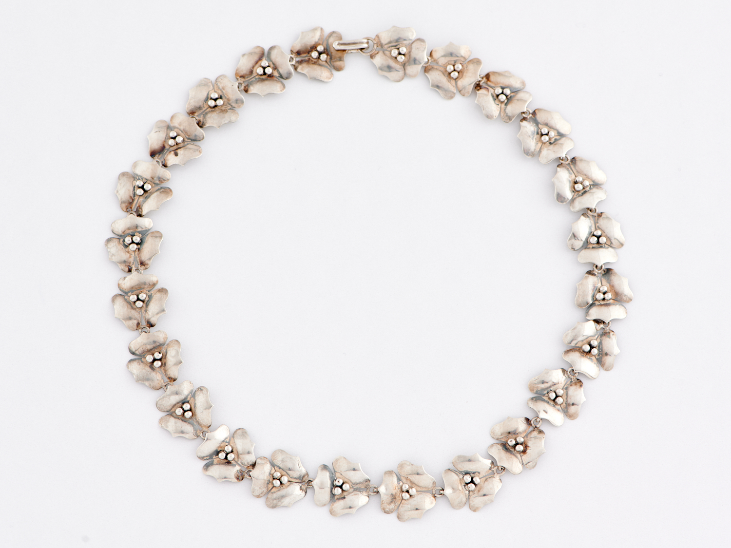 A SCANDANAVIAN NECKLACE IN STERLING SILVER, LENGTH 440MM, WEIGHT 35.3GMS