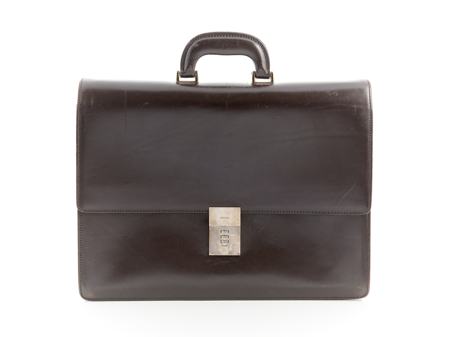 CONDITION GRADE 4: In very good condition. This piece may show signs of light wear. It is in very good condition but the corners may show signs of light scuffing, the base may show light scratches, and the hardware may exhibit light marks. (Noticeable surface scratched to leather) Interior is clean. Dust Bag.