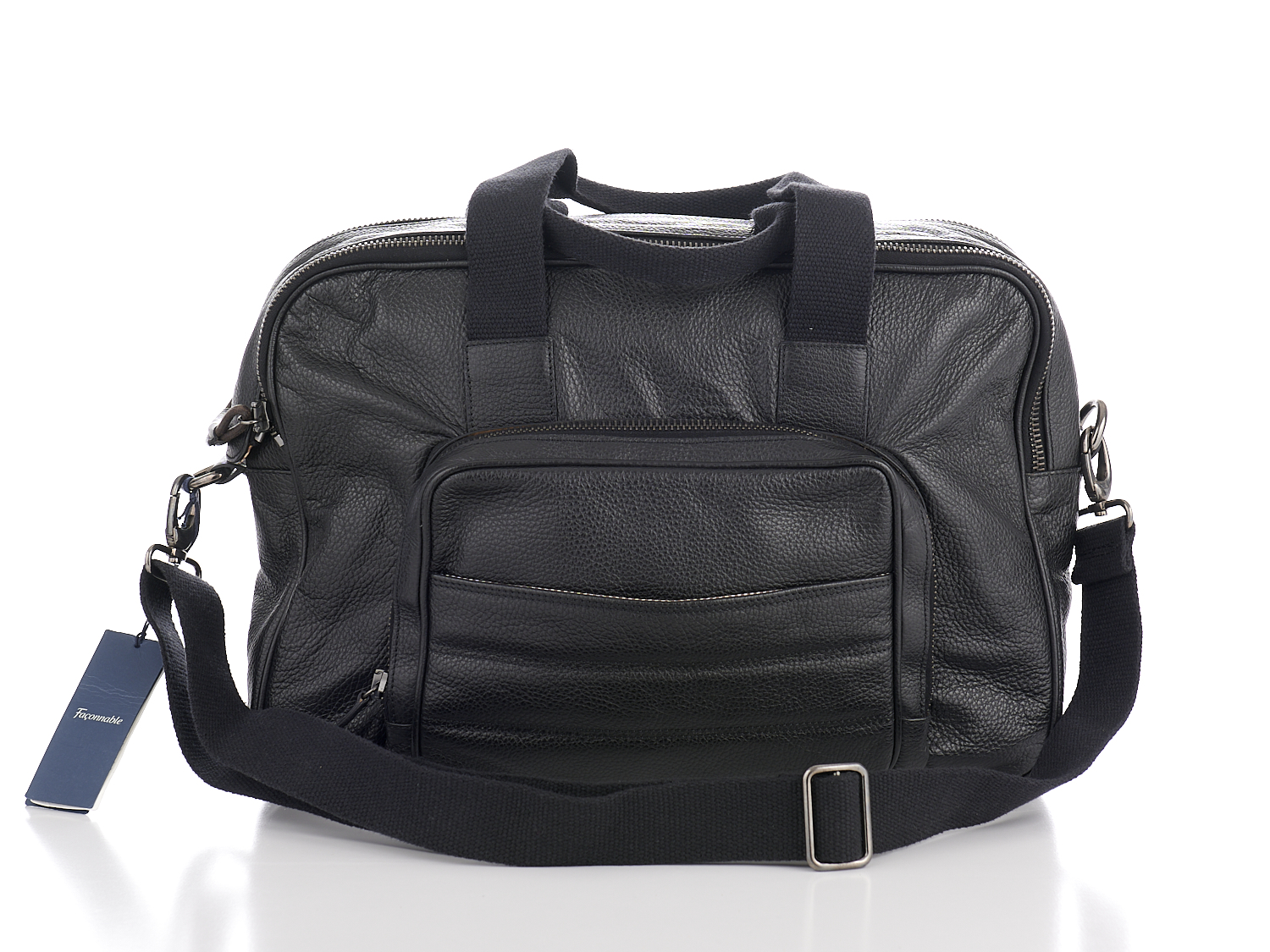 FACCONABLE, BUSINESS CASE - Styled in black grained leather with grosgrain strap and top handle.