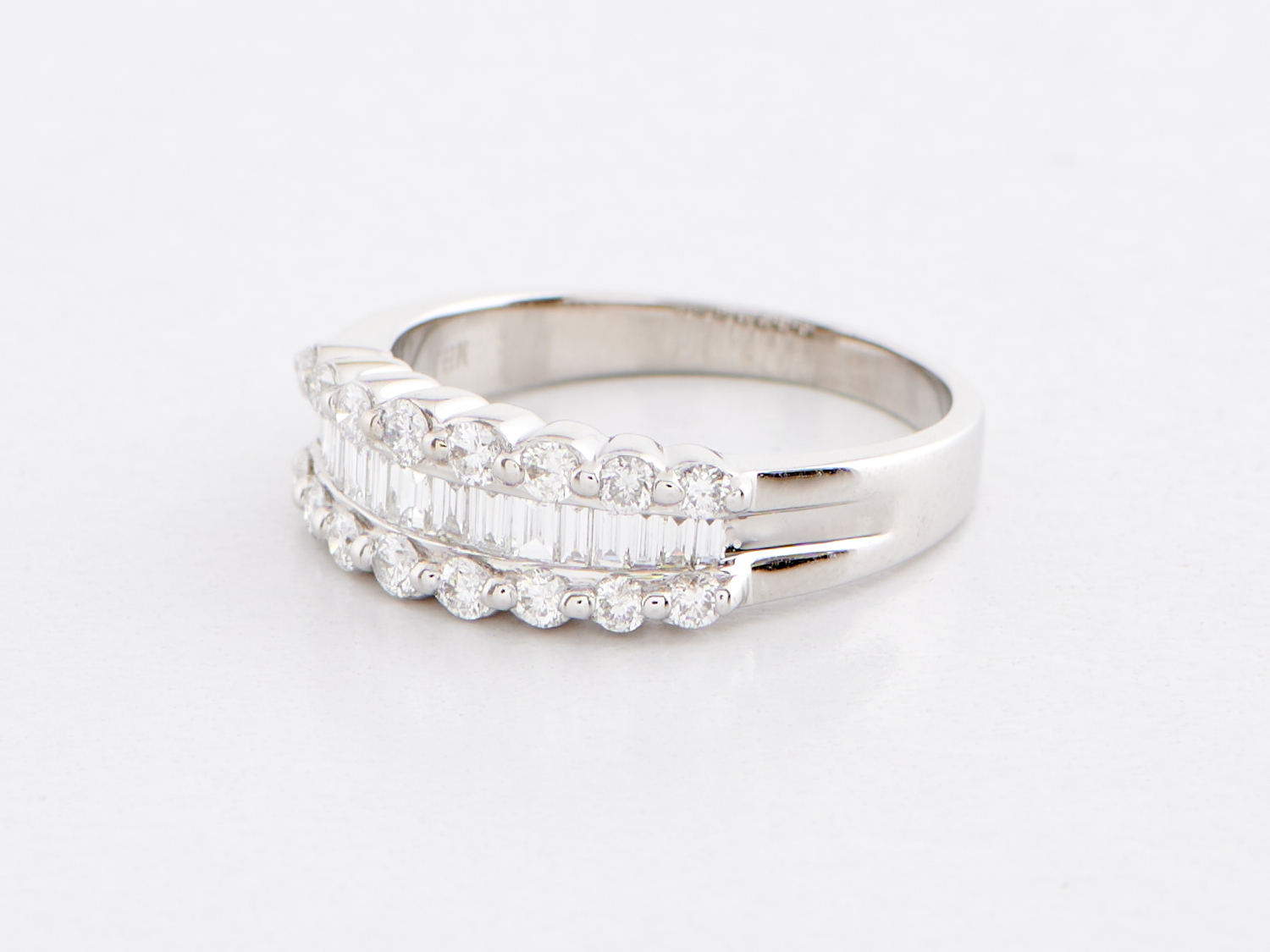 A DIAMOND RING IN 18CT WHITE GOLD, THE DIAMOND TOTALLING 0.80CTS, RING SIZE O, WEIGHT 4.7GMS