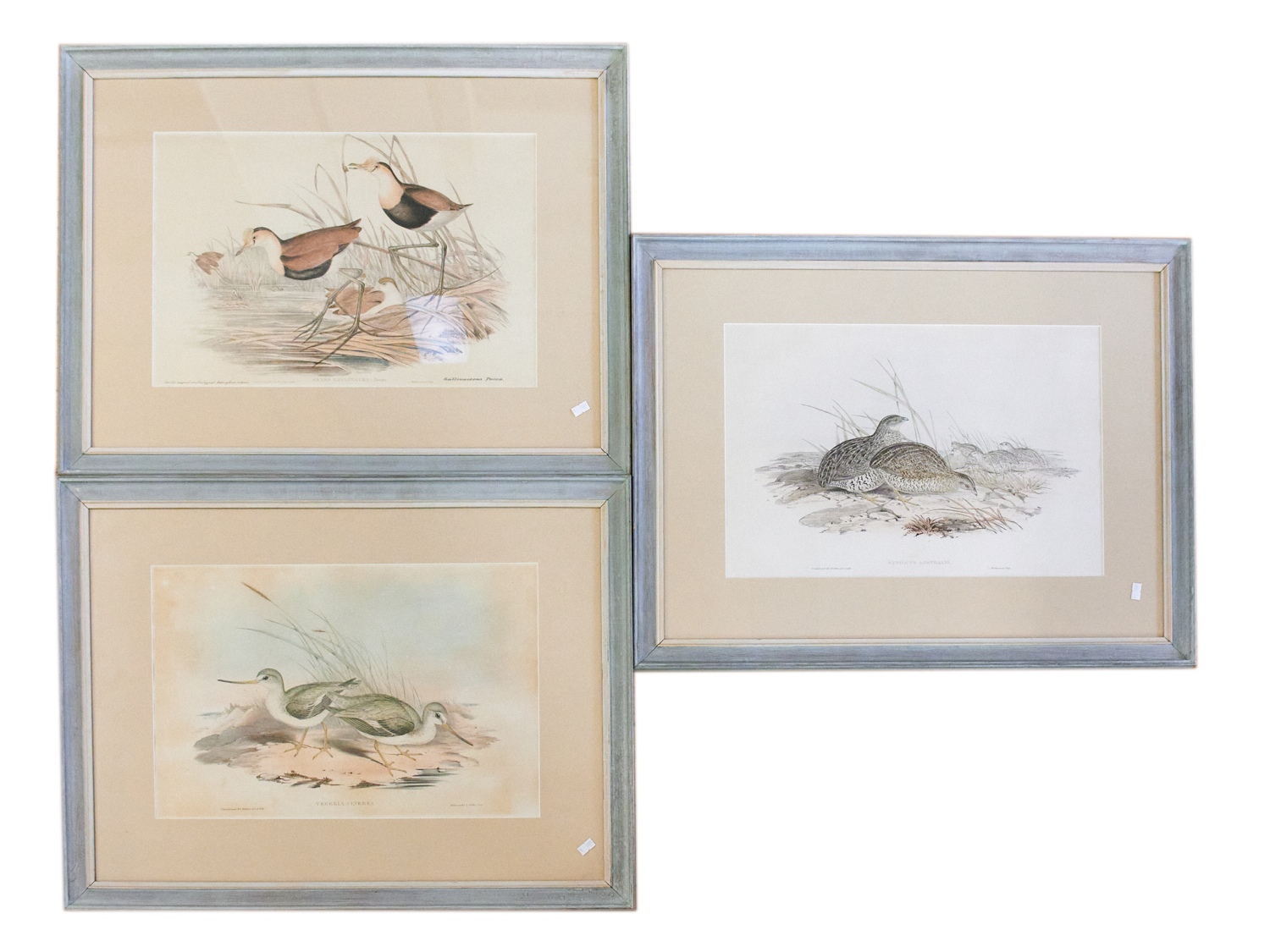 THREE ORIGINAL JOHN GOULD ORNITHOLOGICAL PRINTS INCLUDING QUAIL H.57.5CM X W.75.5CM, LEONARD JOEL LOCAL DELIVERY: MEDIUM