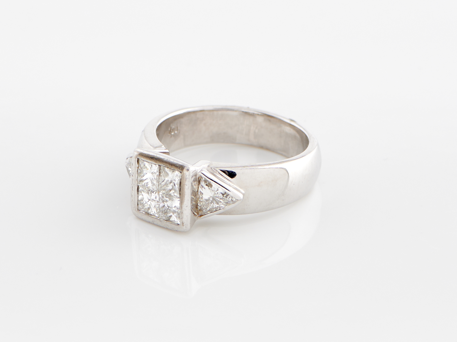 A DIAMOND RING IN 18CT WHITE GOLD, RING SIZE N, 9.5GMS