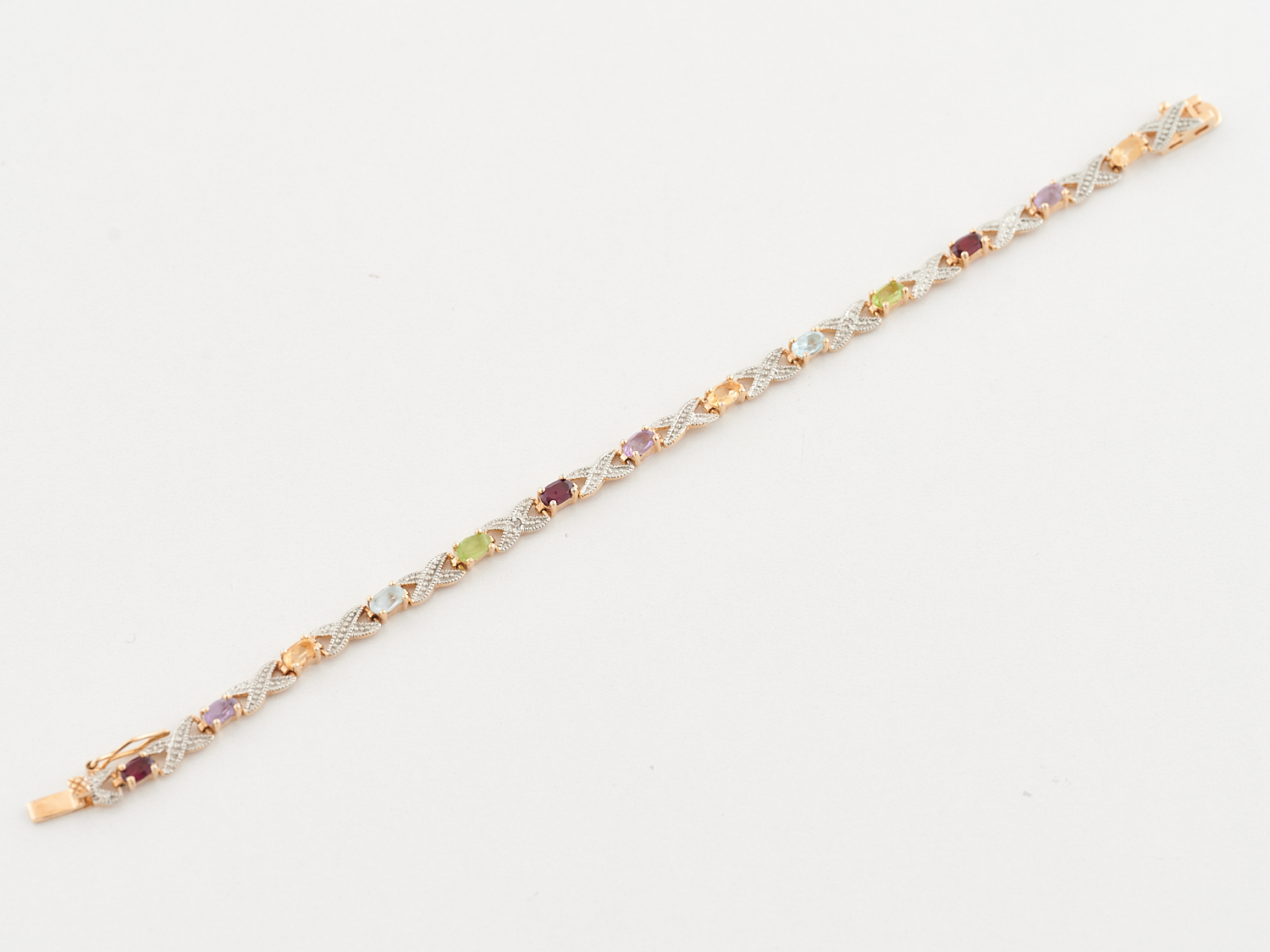 A MULTI GEM SET BRACELET IN GOLD PLATED SILVER, LENGTH 190MM