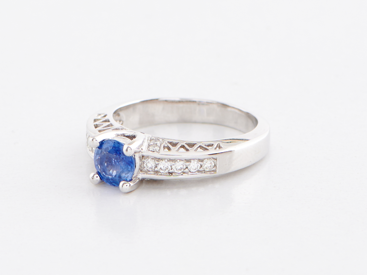 A SAPPHIRE AND DIAMOND RING IN 18CT WHITE GOLD, THE SAPPHIRE WEIGHING 1.02CTS, THE DIAMONDS TOTALLING 0.23CTS, SIZE M, WEIGHT 5.3GMS
