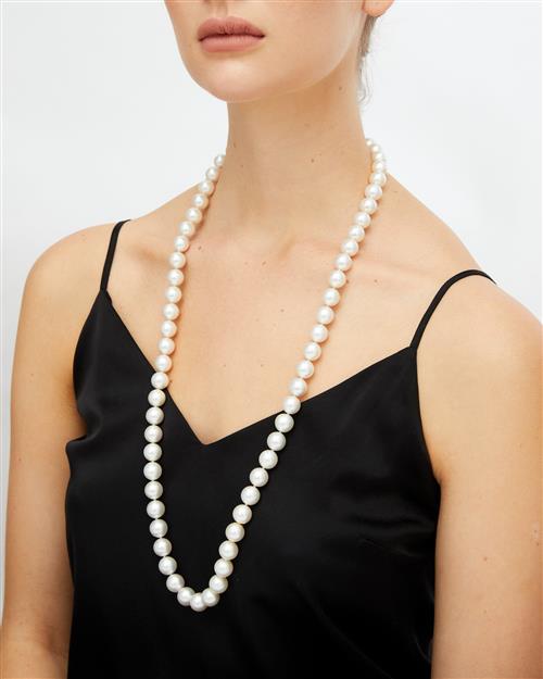 Composed of 66 cultured pearls, graduating from approximately 12.00mm to 13.00mm, completed by a 9ct gold textured ball clasp, length 900mm.