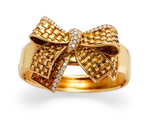 AVAKIAN GENEVE 18CT GOLD AND DIAMOND BOW BANGLE