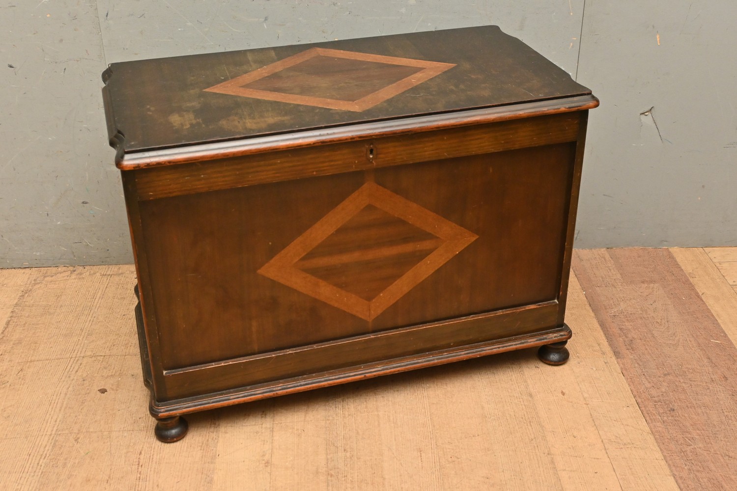 AN ART DECO WALNUT FLIP TOP TRUNK (A/F) (64H X 89W X 48D CM) (LEONARD JOEL DELIVERY SIZE: LARGE)